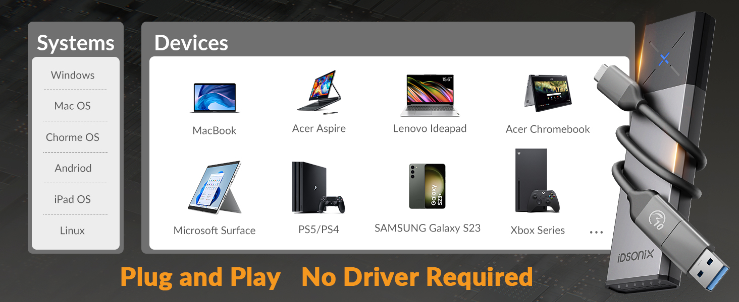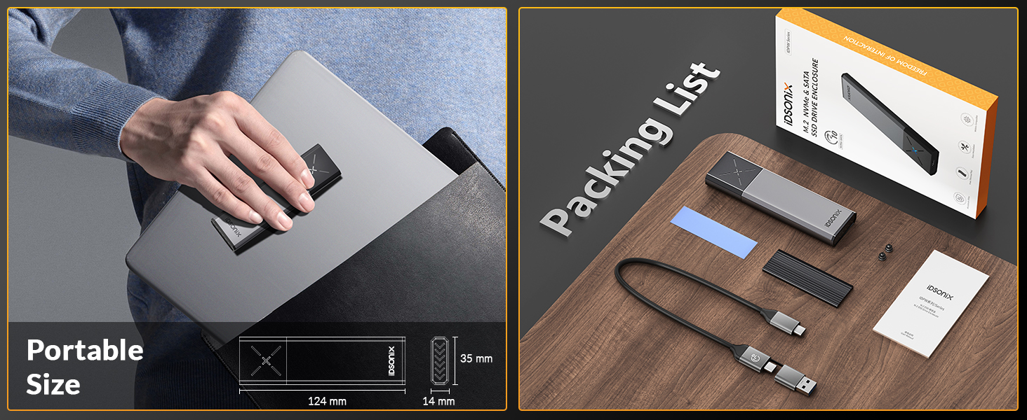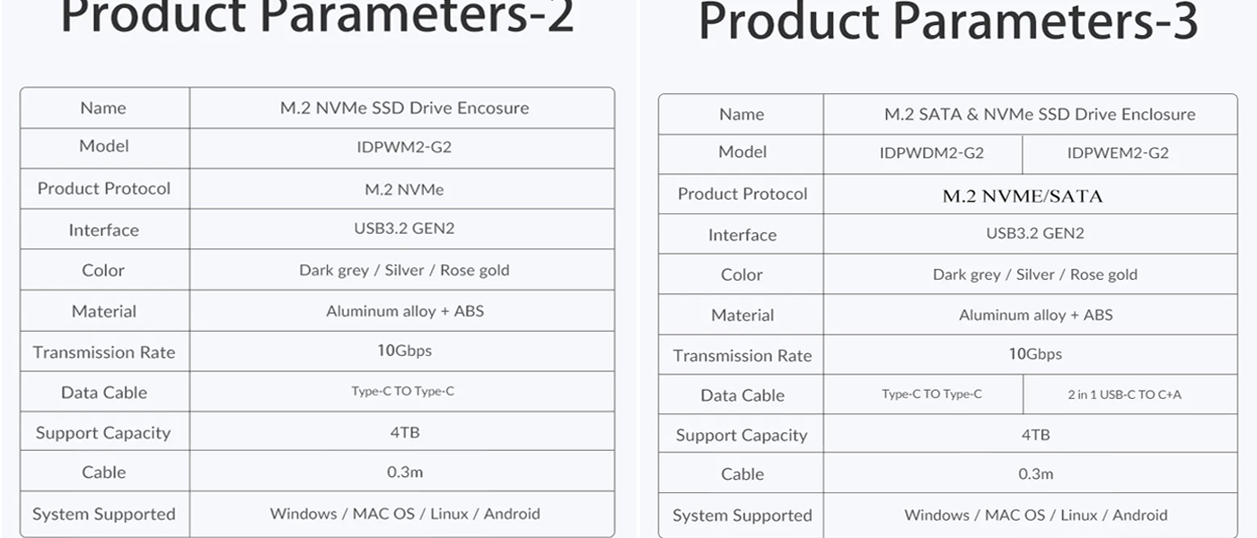 ③10Gbps Dual Protocol ( gray ) : For M-Key & M+B Key NVMe SATA protocol (1* USB C to C+A Cable 2 in 1,)