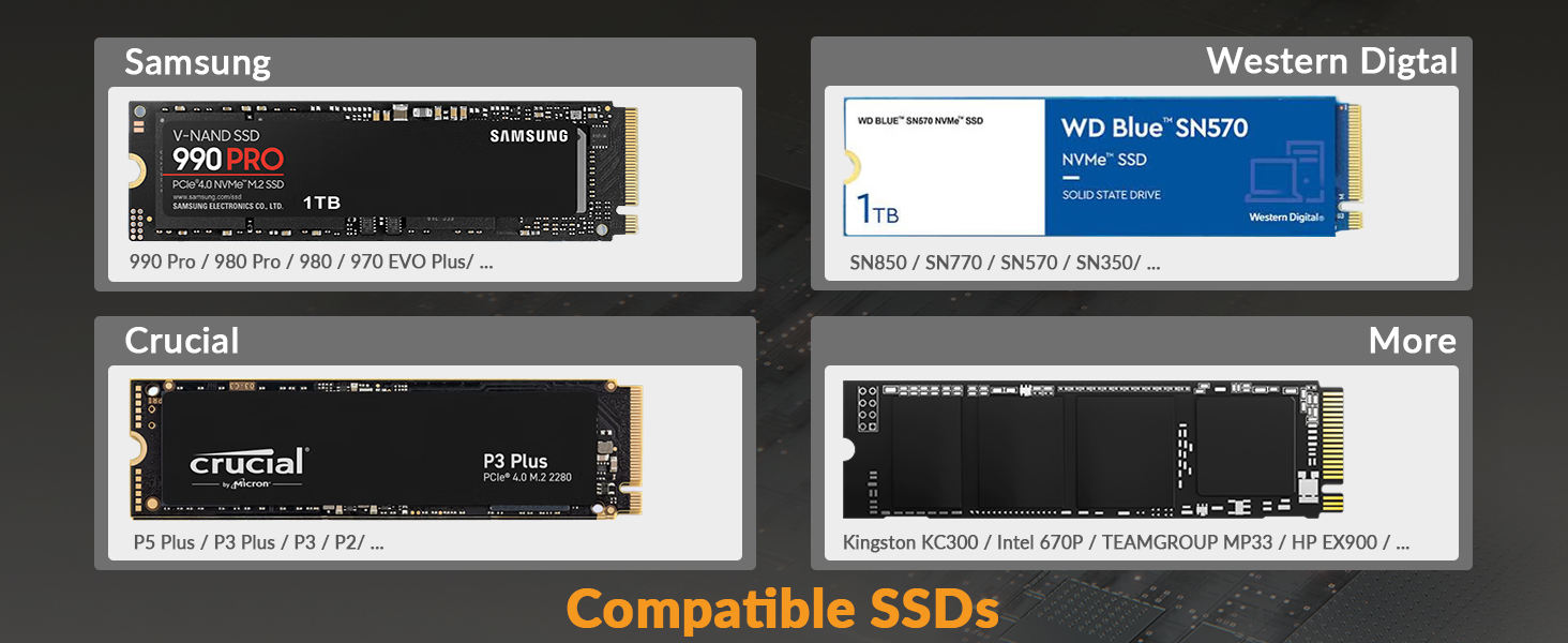 Compatible NVMe and SATA Plug and Play Compatible SSDs