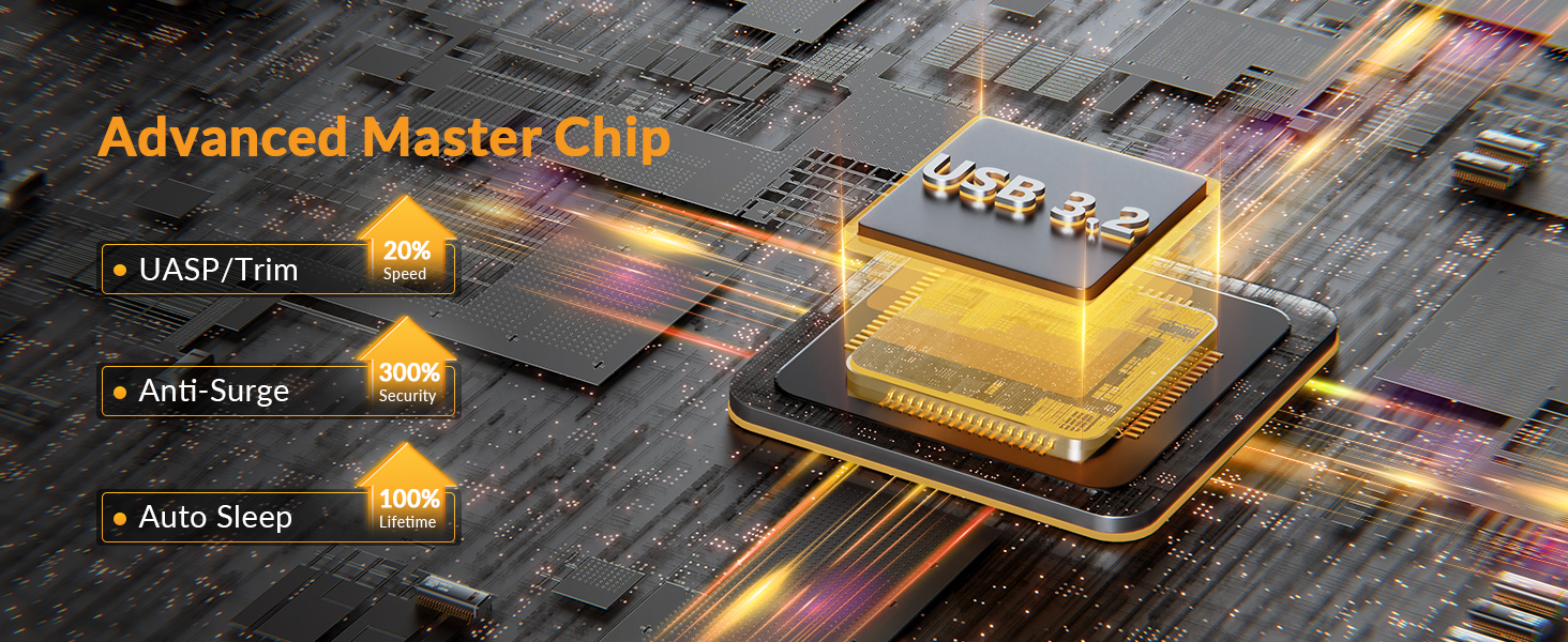 - 【Erweiterter Master-Chip】 Dieses externe NVMe-Gehäuse verfügt über einen fortschrittlichen Master-Chip, der automatischen Ruhezustand, Überhitzungsschutz, Überspannungsschutz und andere Funktionen unterstützen kann, sodass die Sicherheit der SSD auf das Vierfache des Originals und die Lebensdauer der SSD erhöht wird wird verdoppelt.