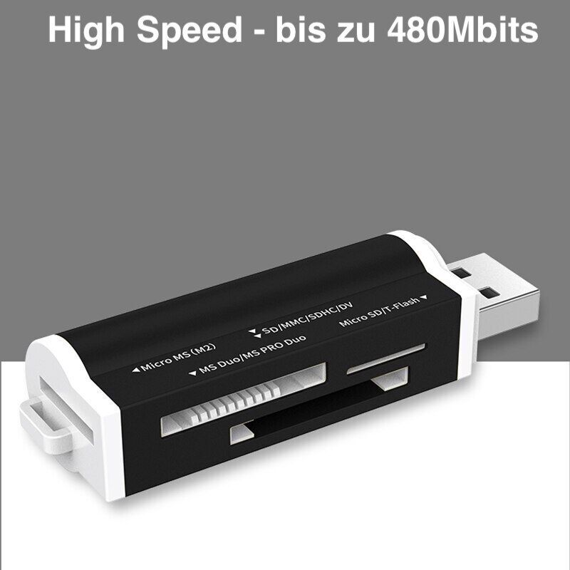 Kartenleser-Unterstützung: M2, MS/ MS PRO, MS Pro Duo, MS Duo, SD, MMC, SDHC, DV, Micro SD/TF. (Karten sind nicht enthalten)