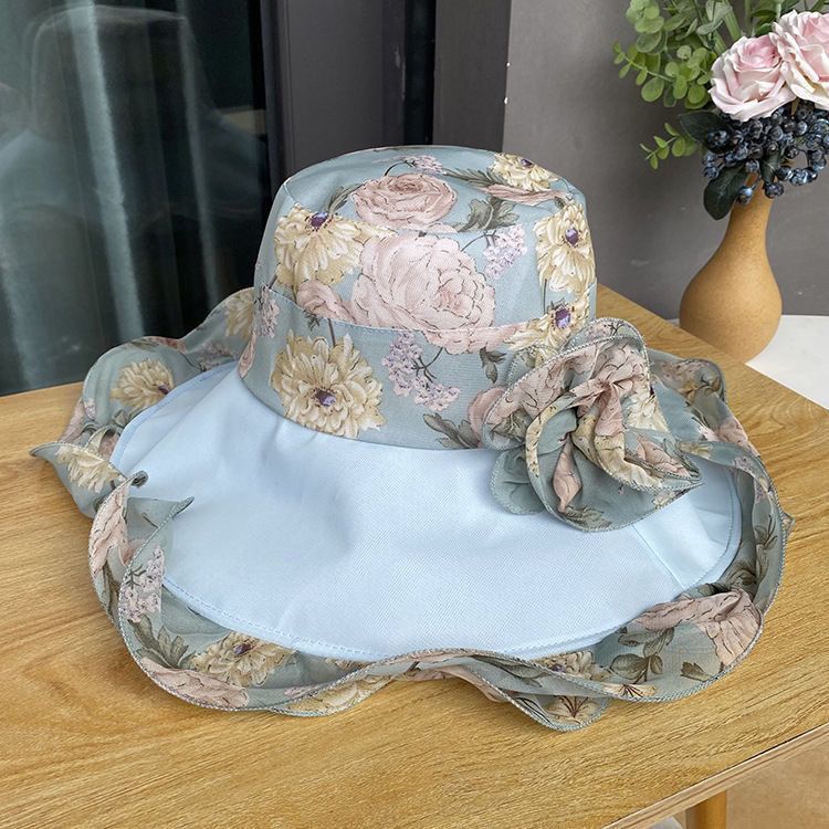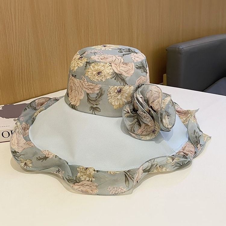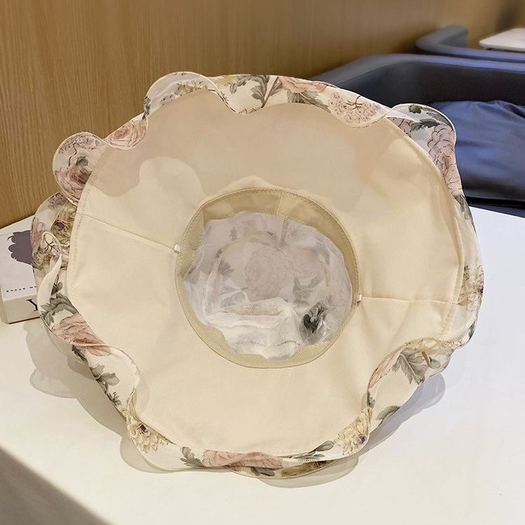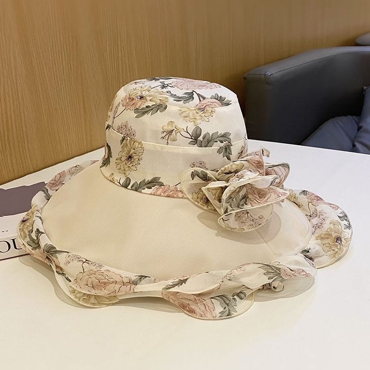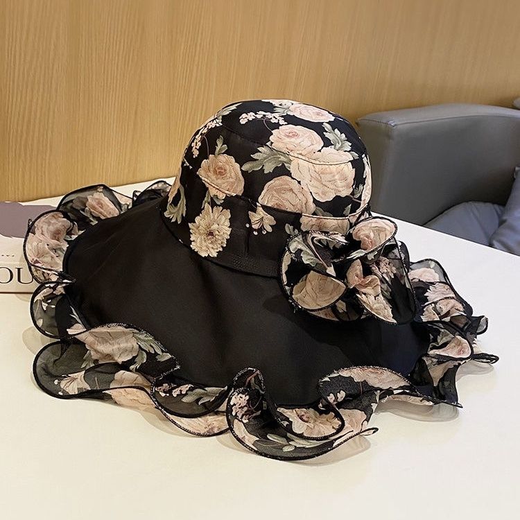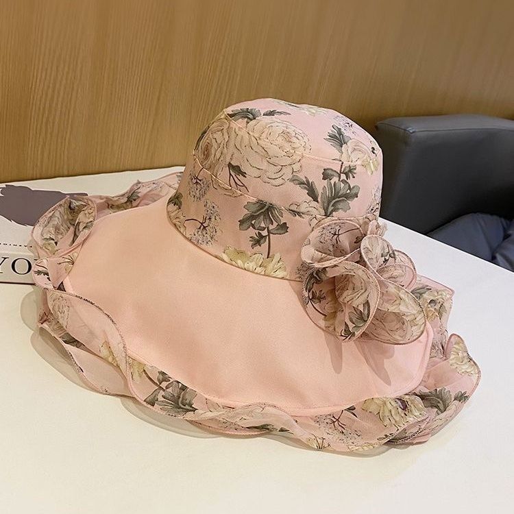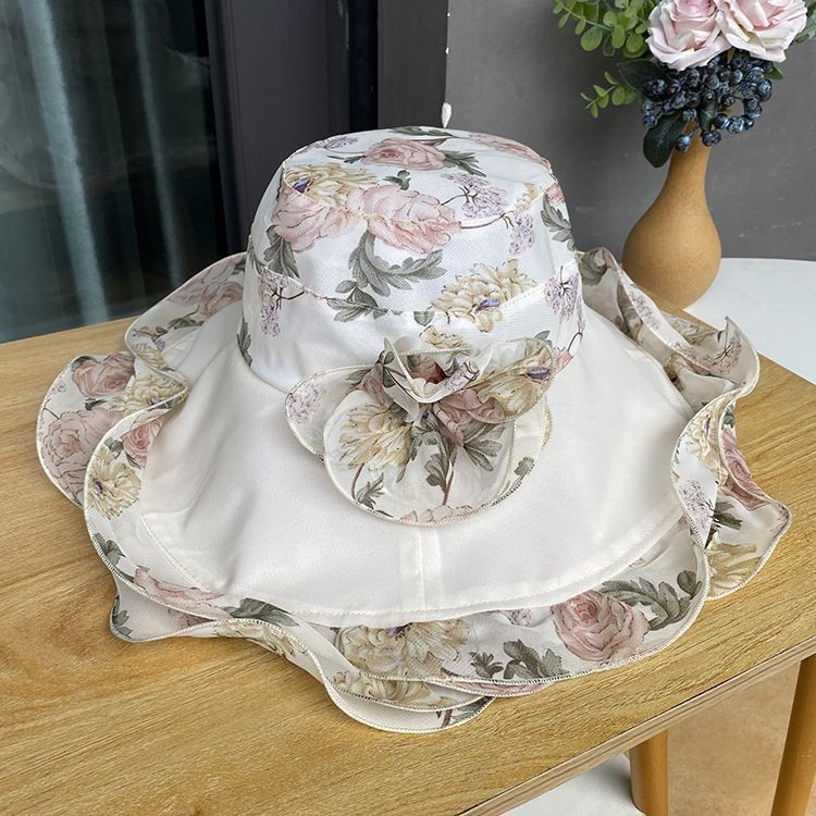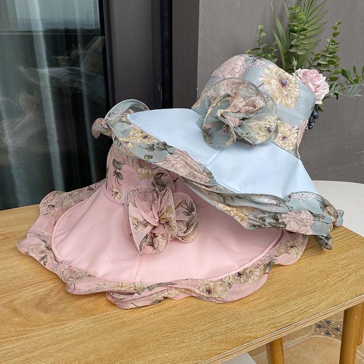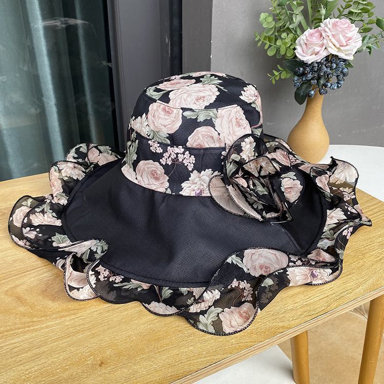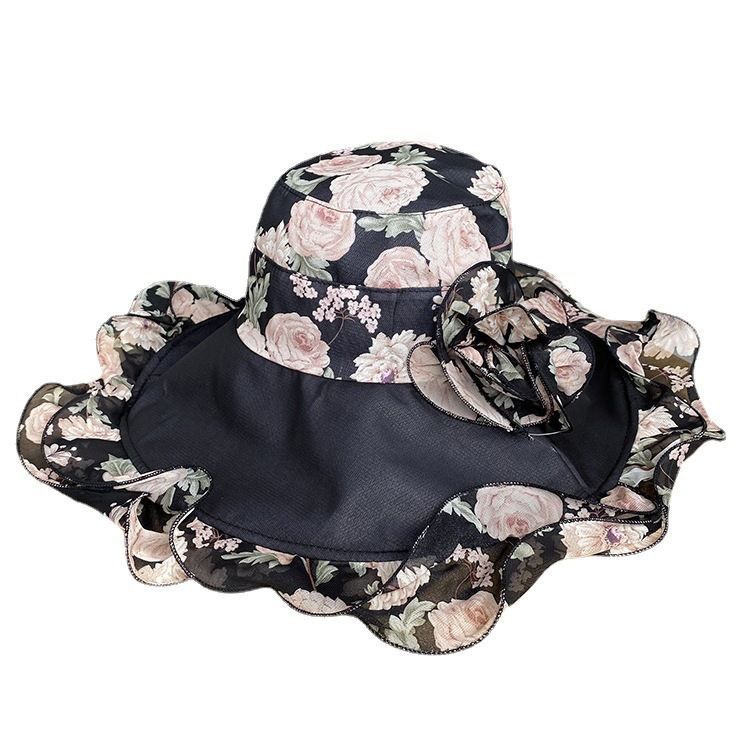 Floral Wide Brim Sun Hat Foldable Breathable Beach Hat Summer Travel Cap Women