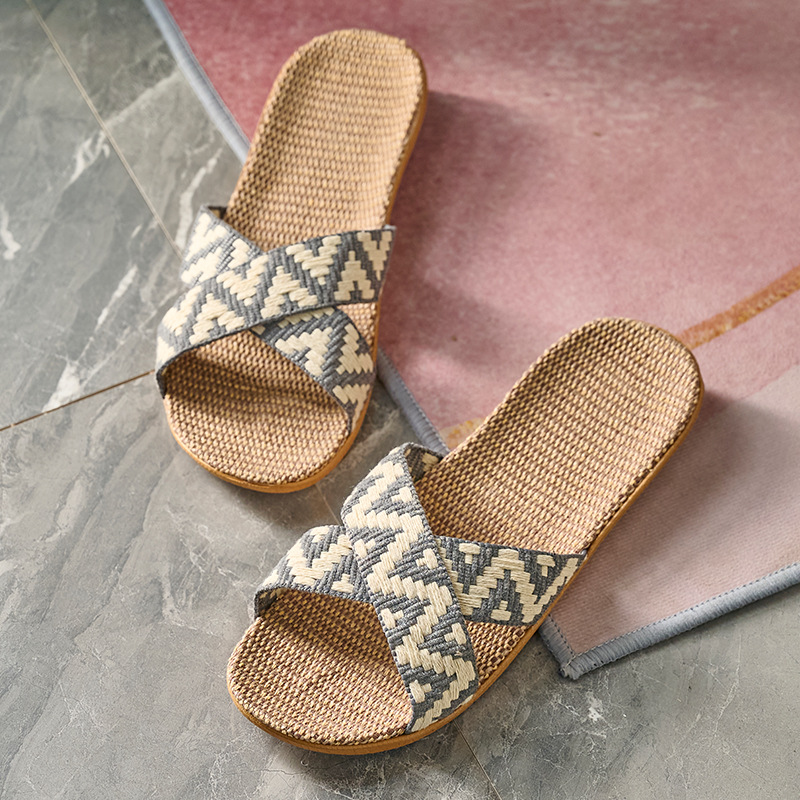Summer Linen Slippers, Breathable and Silent Home Slippers, Soft-soled Flats