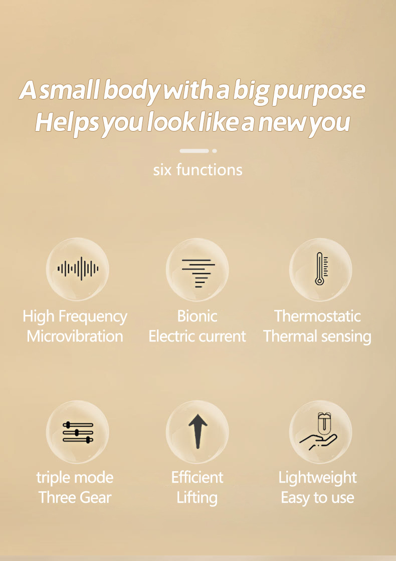 Product Name:Face Lifting Instrument Color: Green/White Material:ABS+PC+Hardware Packed size:14*11*5cm Packed weight: 220g Power supply: type-c Battery capacity:400mAh Rated power: 3w Rated input voltage: 5V=1A Gear: 3 gears