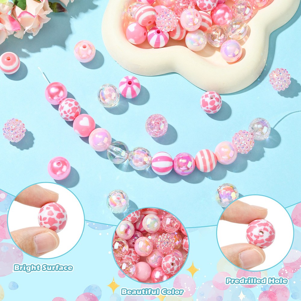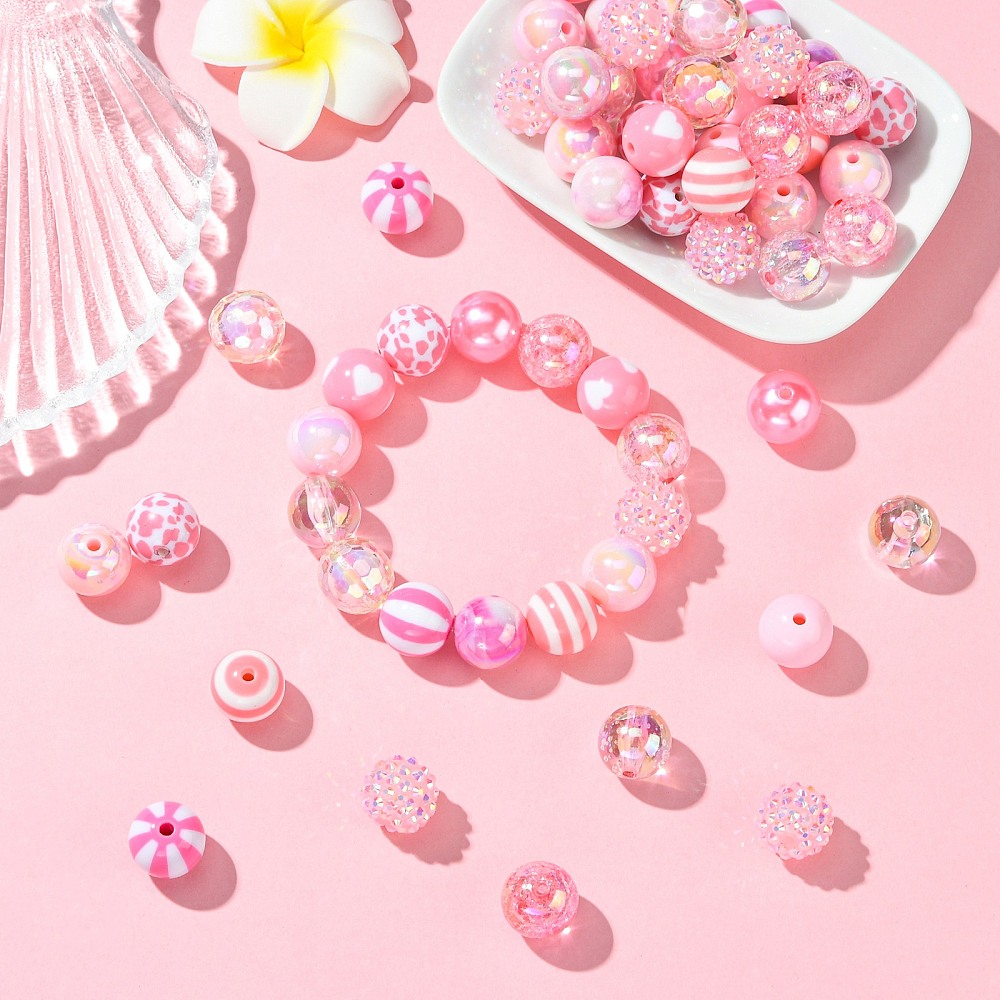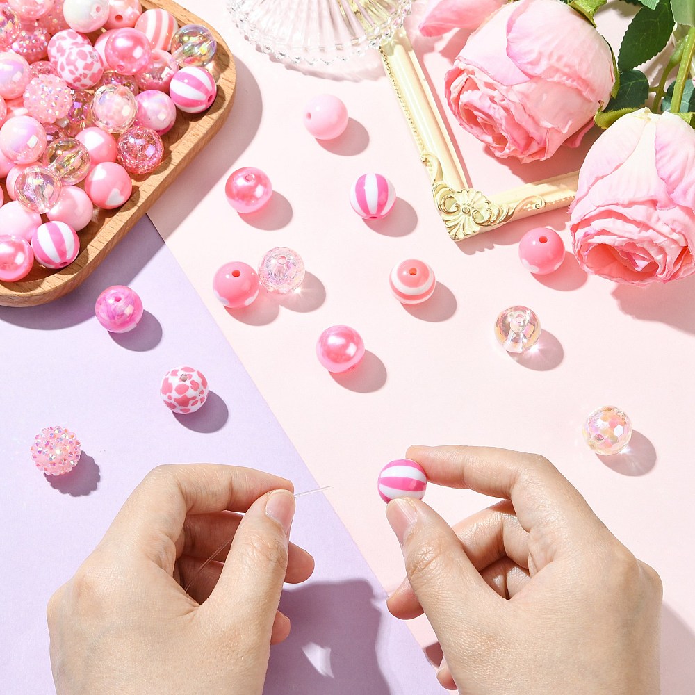 100pcs Round Bubblegum Pink Spacer Beads for Bracelets Necklace Jewelry Making