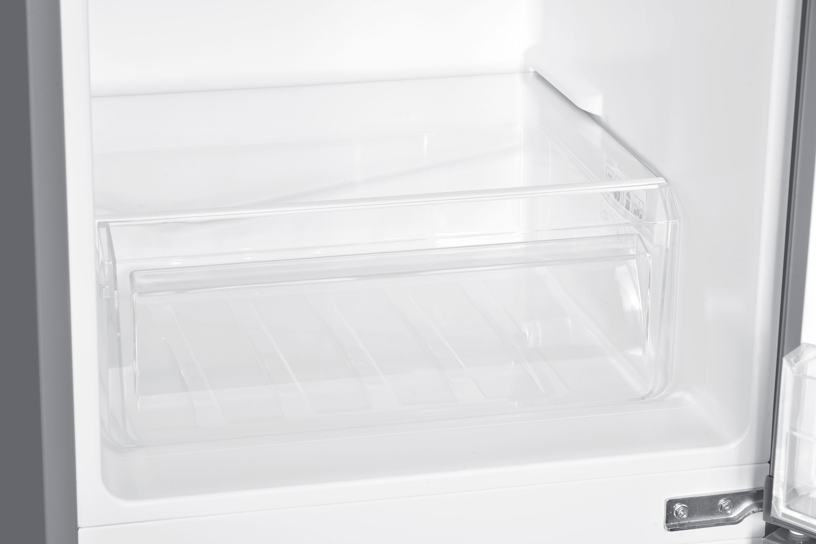 Ausgestattet mit einer Energieeffizienzklasse E, sorgt der effiziente Kühlschrank für einen sparsamen Energieverbrauch bei maximaler Leistung. Der Gesamtinhalt von 173 Litern teilt sich in 121 Liter Kühlraum und 52 Liter Gefrierraum auf, ideal für Familien oder Einzelpersonen.