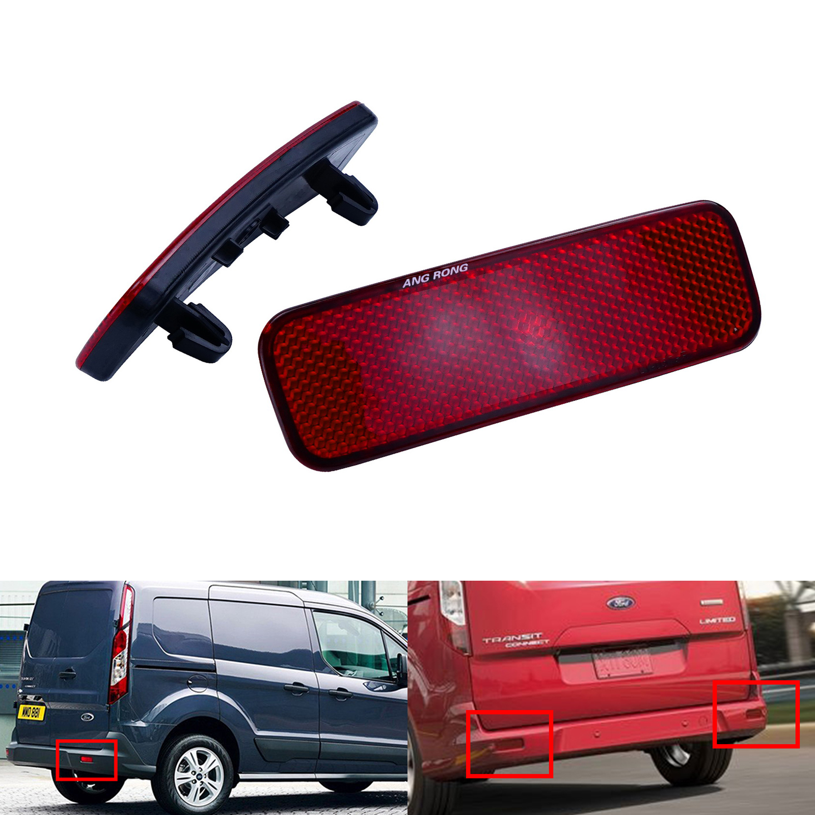 2 Stück (ein Paar) von hinteren Stoßstange Reflektor mit roten Objektivdeckel für Ford Transit
