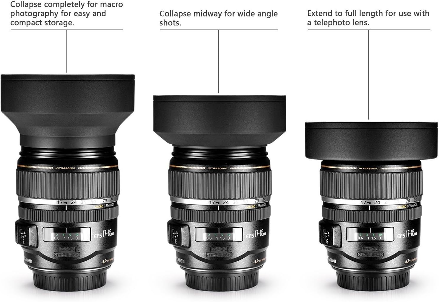 ✔ Prevents vignetting on wide-angle lenses when collapsed