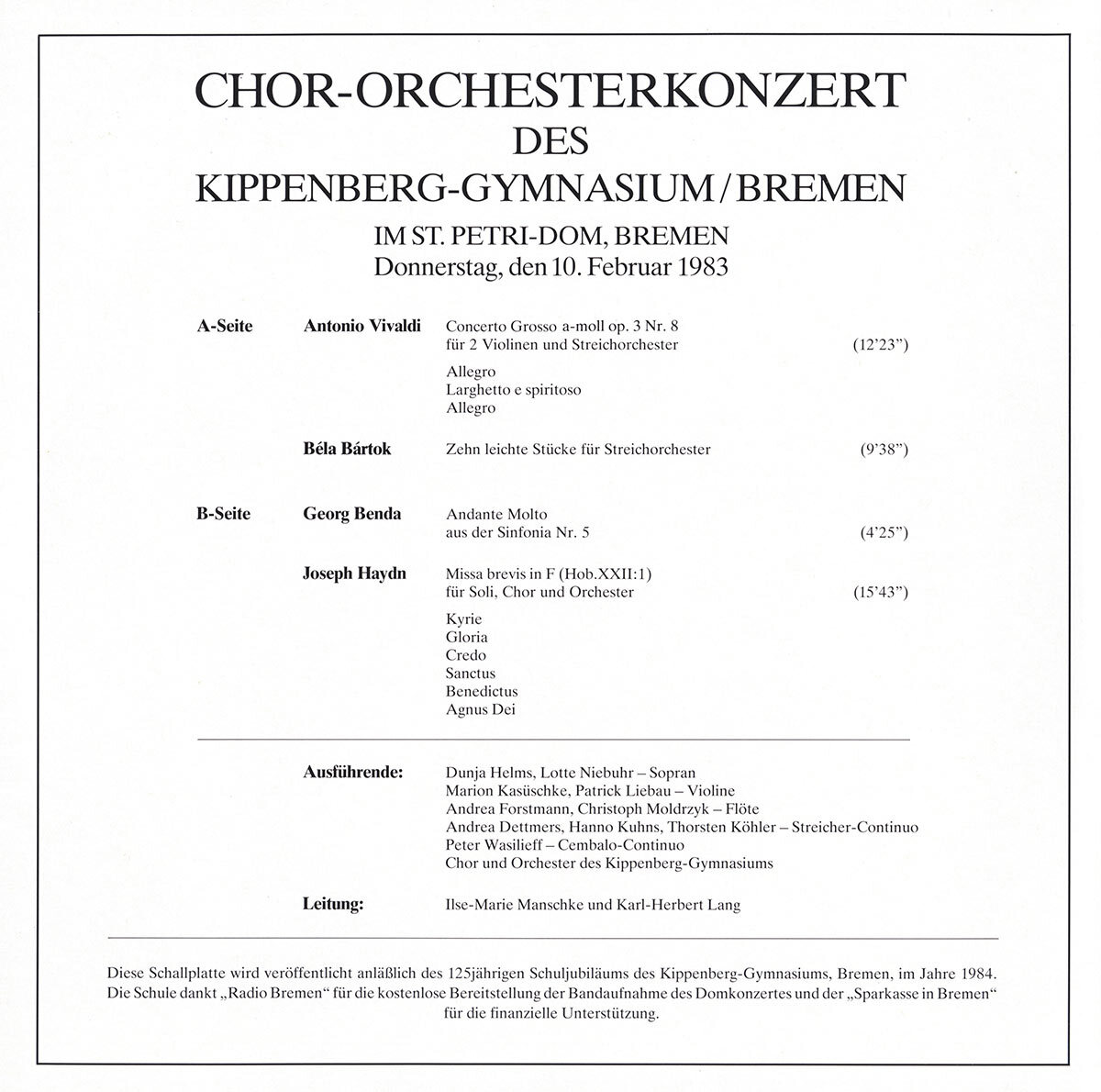Vermes, Schmahl violins;