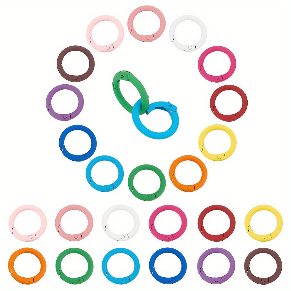 Alloy Spring Gate Rings: about 0.98 inch(25mm/0.98inch) in diameter, 0.14 inch(3.5mm/0.14inch) thick(7 Gauge), 0.69 inch(17.5mm/0.69inch) inner diameter, 12 colors, 2pcs/color, 24pcs;