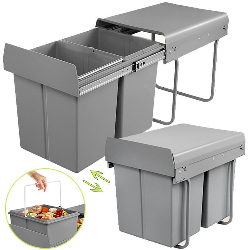 ▶Waste collector with two separate containers: The kitchen waste system offers you an easy way to separate your waste using two separate containers. Ideal as an organic waste bin, garbage bin or residual waste bin or other waste - with this waste separation system you can keep your kitchen in perfect order. Perfect for cabinets with a width of 40 cm and above, designed for under-sink cabinets.