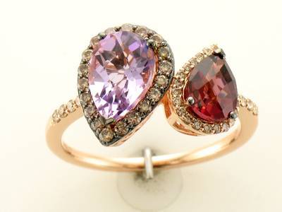 Le Vian Ring featuring 1 1/4 cts. Cotton Candy Amethyst, 1 cts. Raspberry Rhodolite, 1/5 cts. Chocolate Diamonds, 1/6 cts. Nude Diamonds set in 14K Rose Gold