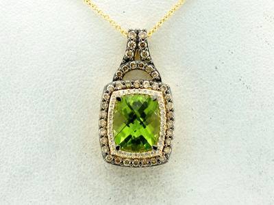 Le Vian Grand Sample Sale Pendant featuring 2 1/2 cts. Green Apple Peridot, 1/2 cts. Chocolate Diamonds, 1/10 cts. Vanilla Diamonds set in 14K Yellow Gold