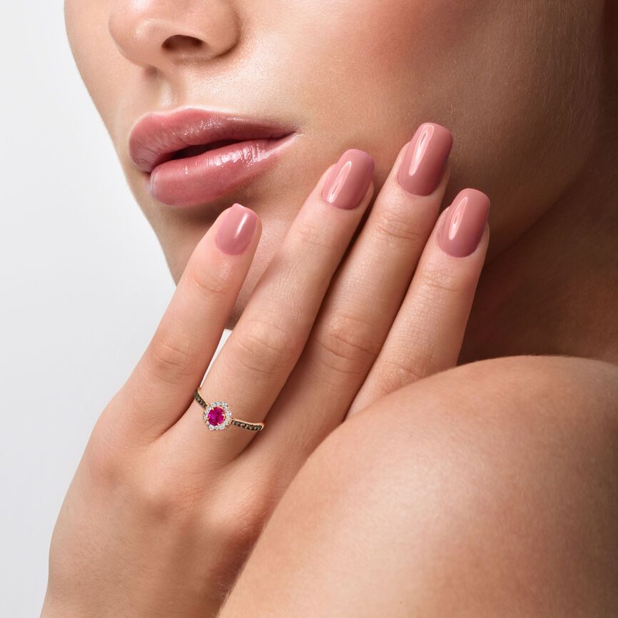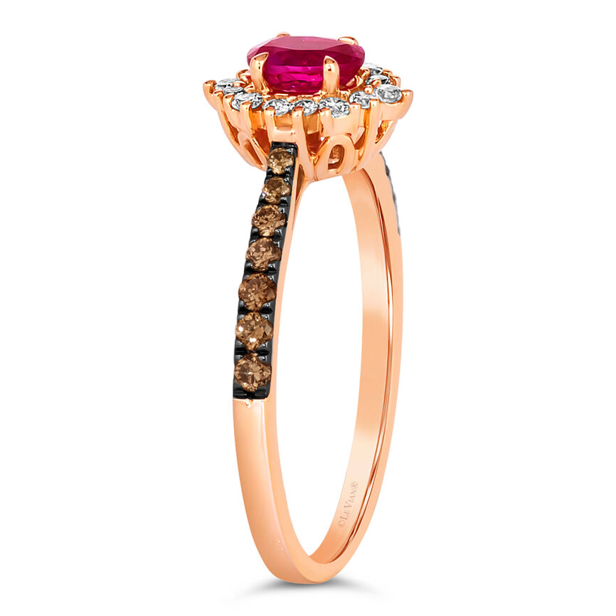 Le Vian Creme Brulee® Ring featuring 3/8 cts. Passion Ruby™, 1/5 cts. Chocolate Diamonds® , 1/6 cts. Nude Diamonds™ set in 14K Rose Gold