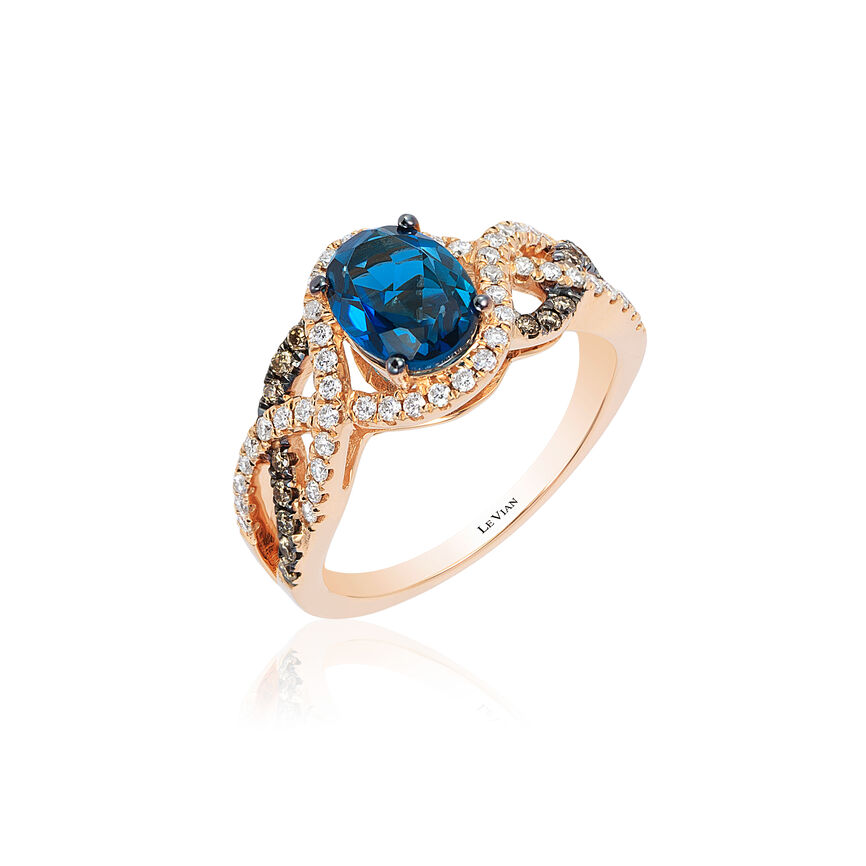 Le Vian Chocolatier Ring featuring 1 1/3 cts. Deep Sea Blue Topaz, 1/8 cts. Chocolate Diamonds , 1/4 cts. Vanilla Diamonds set in 14K Rose Gold