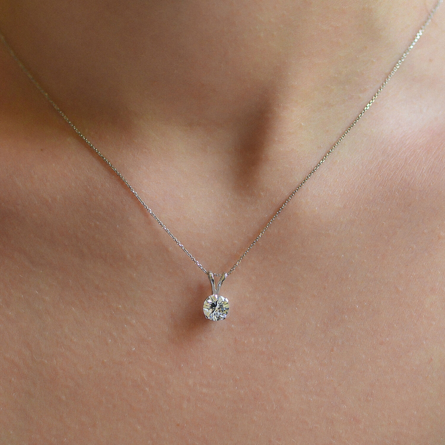 1.00 CT F/SI2 Shiny Solitaire Round Cut Diamond Pendant 14K White Gold