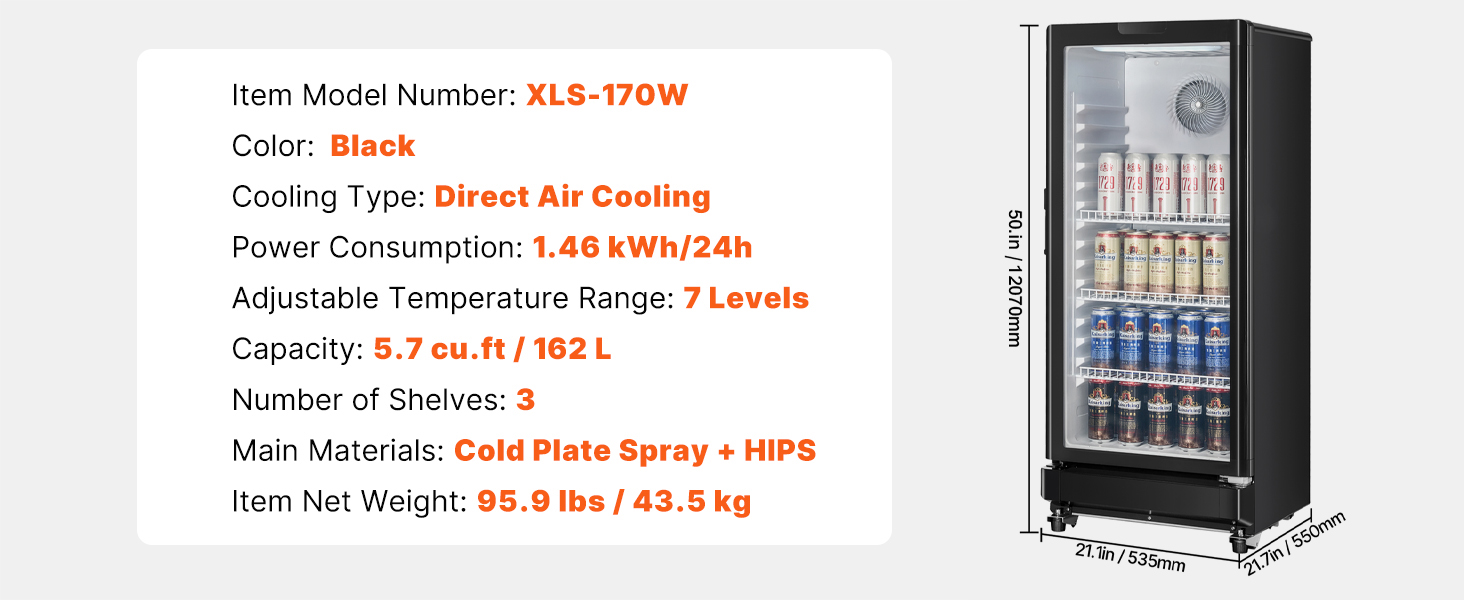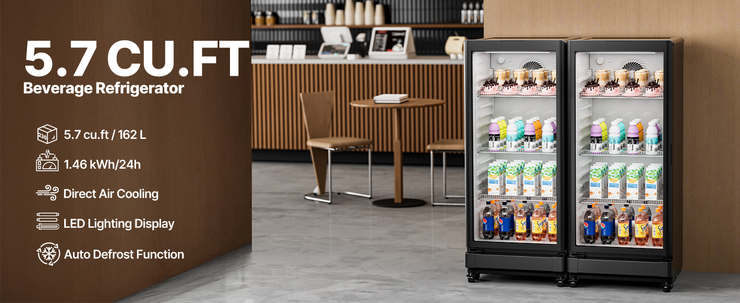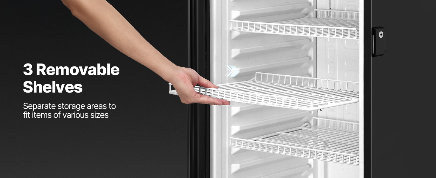 - 5.7 cu.ft / 162 L Large Capacity: Our commercial display refrigerator merchandiser comes with 3 adjustable shelves and multiple fixed slots for easy customization of the interior space. The 5.7 cu.ft / 162 L capacity is excellent for storing beverages in various sizes
