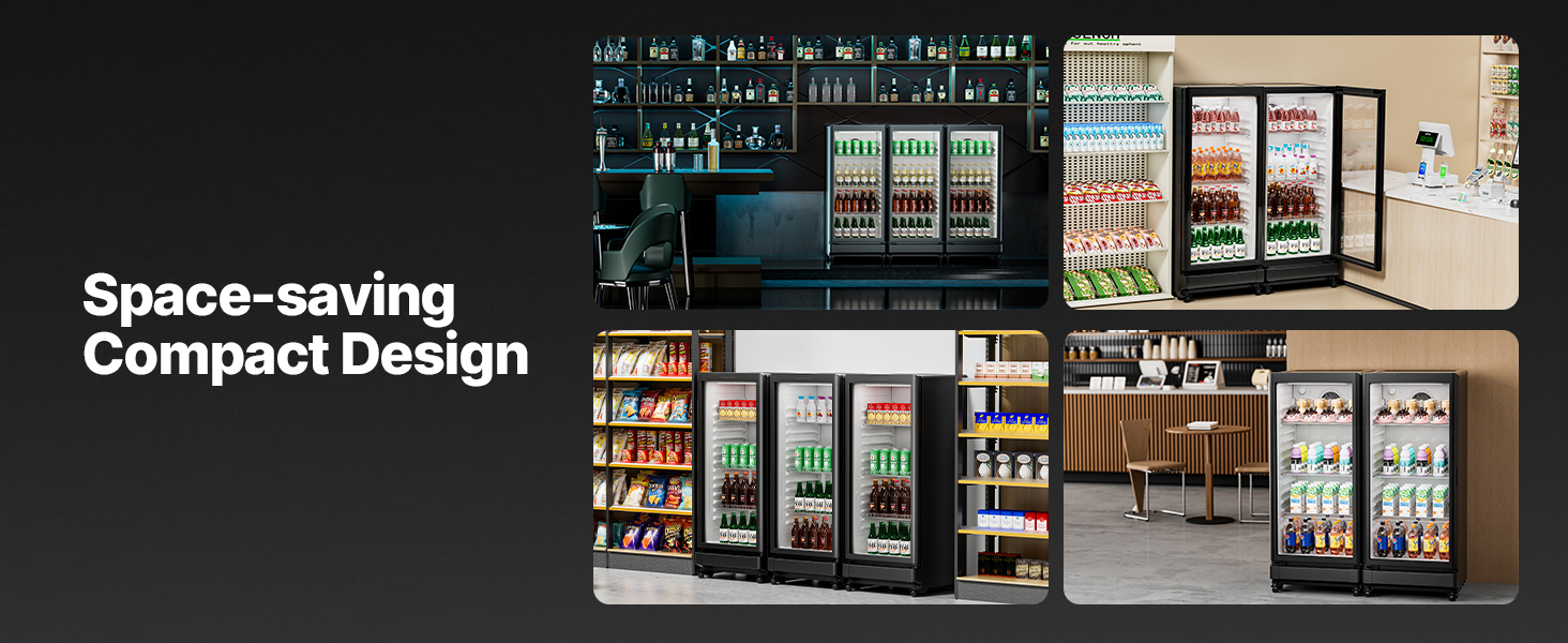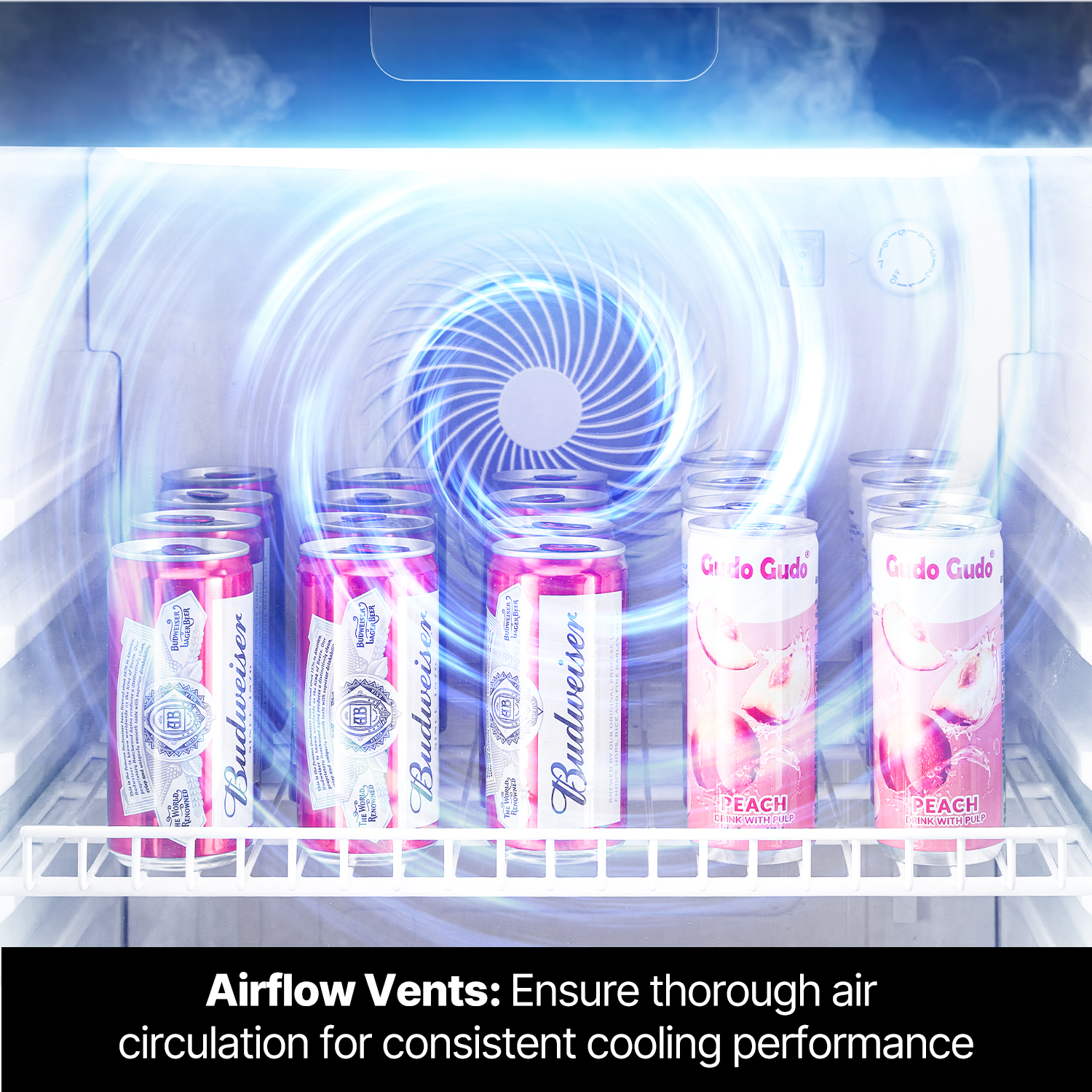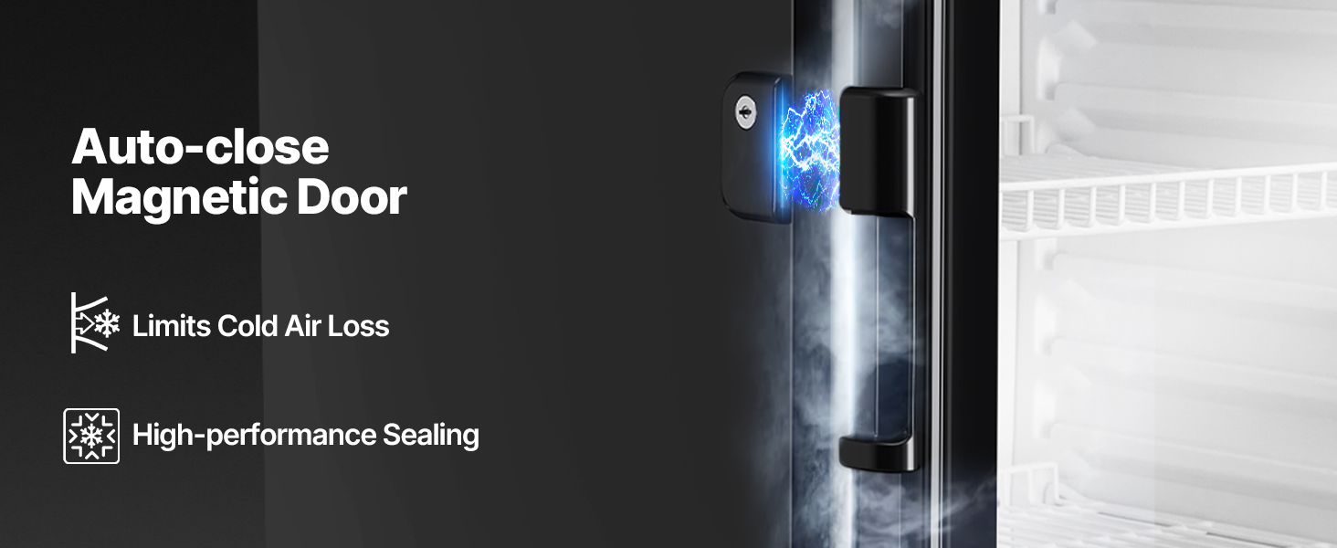 - Frostless & Energy-saving: With the automatic defrost system, our beverage refrigerator cooler merchandiser regularly cleans ice buildup from the evaporator, so you never have to worry about manual defrosting. It ensures even temperature distribution, reduces compressor strain, and lowers power usage (1.46 kWh/24h)