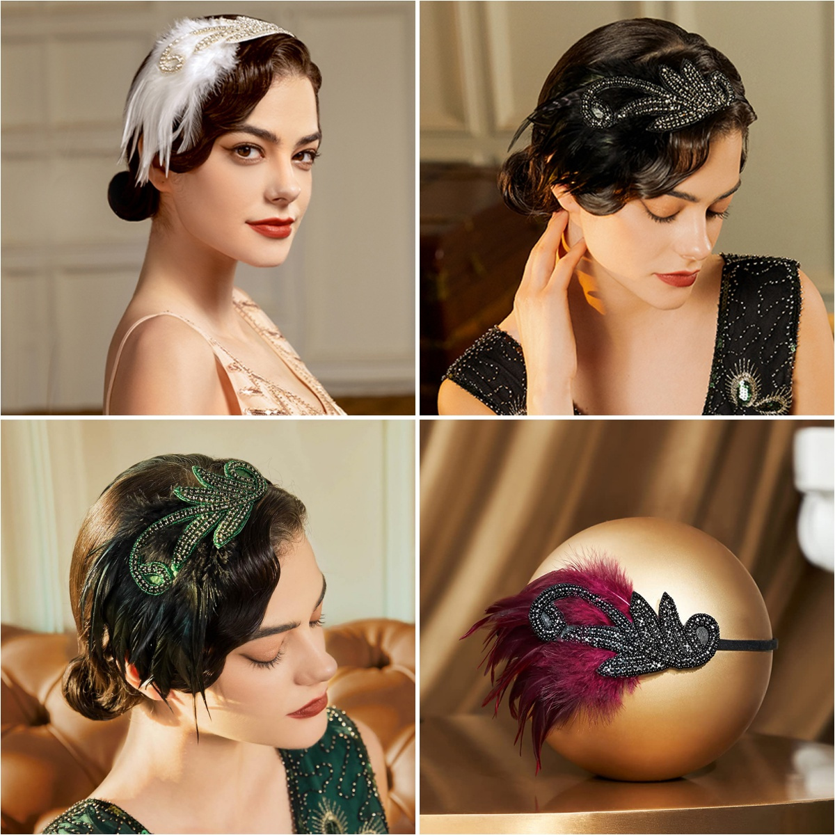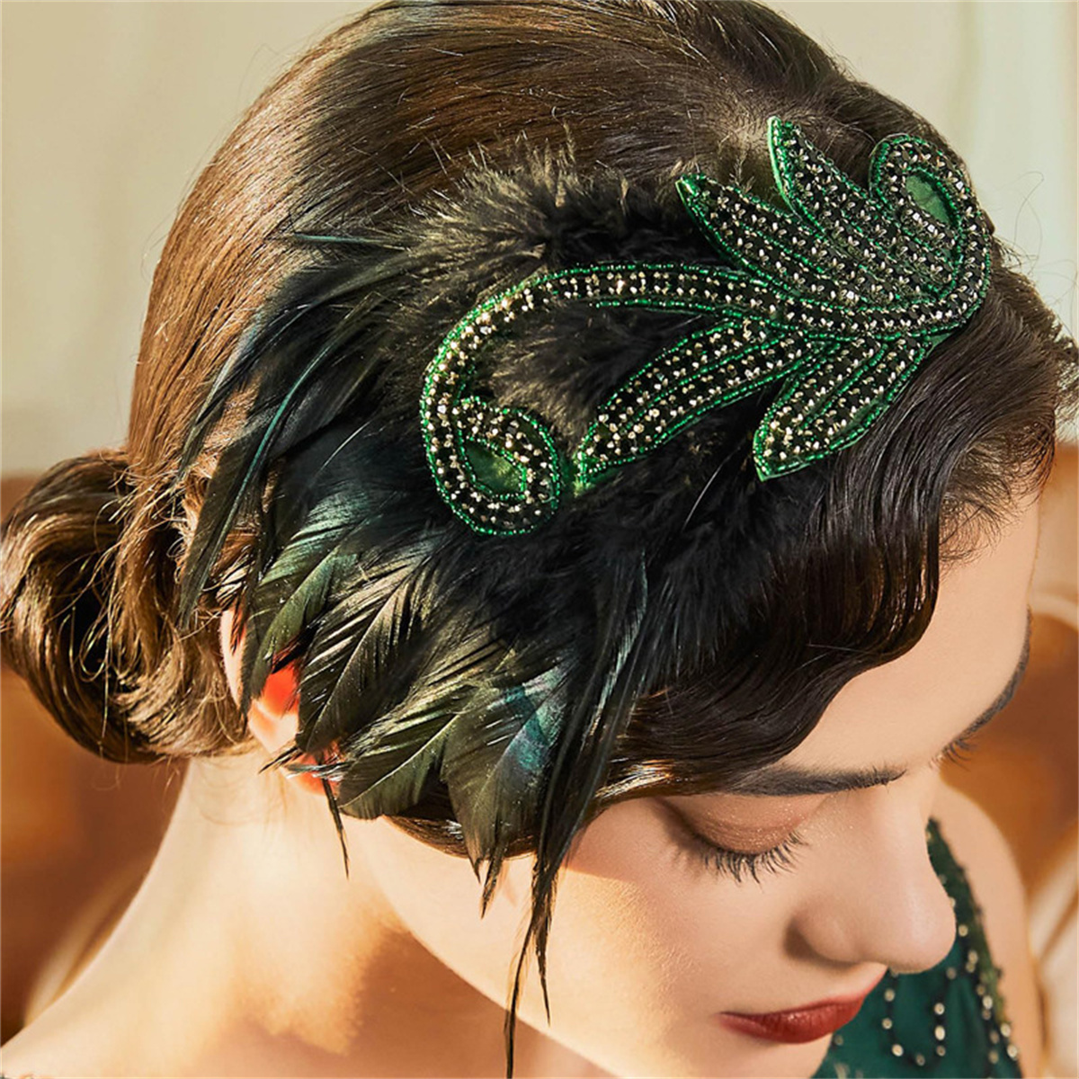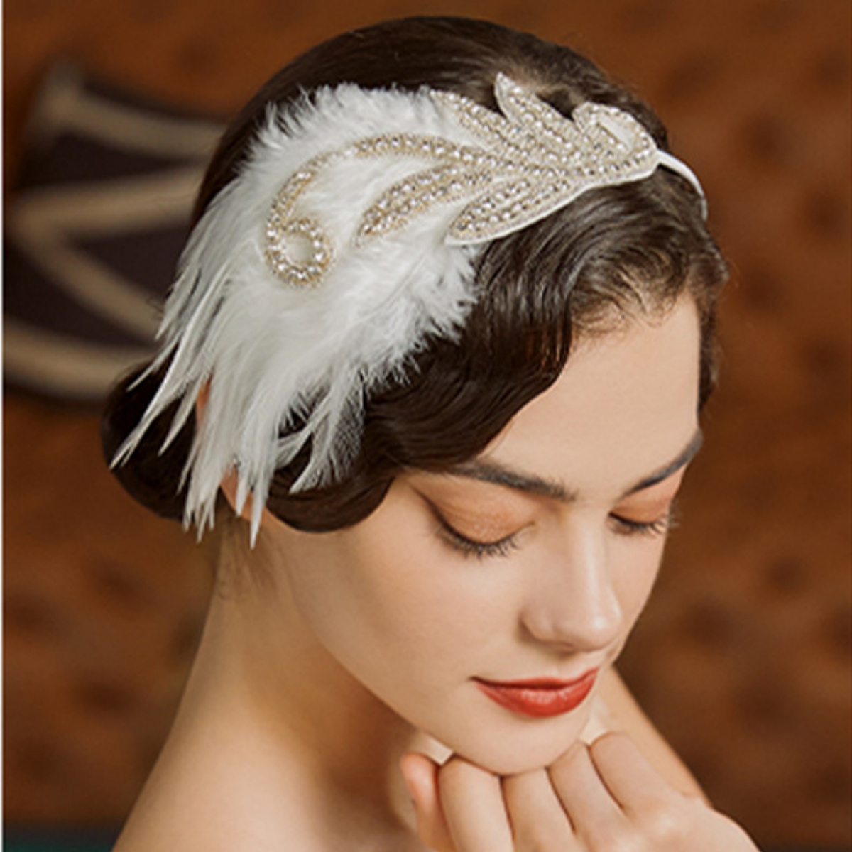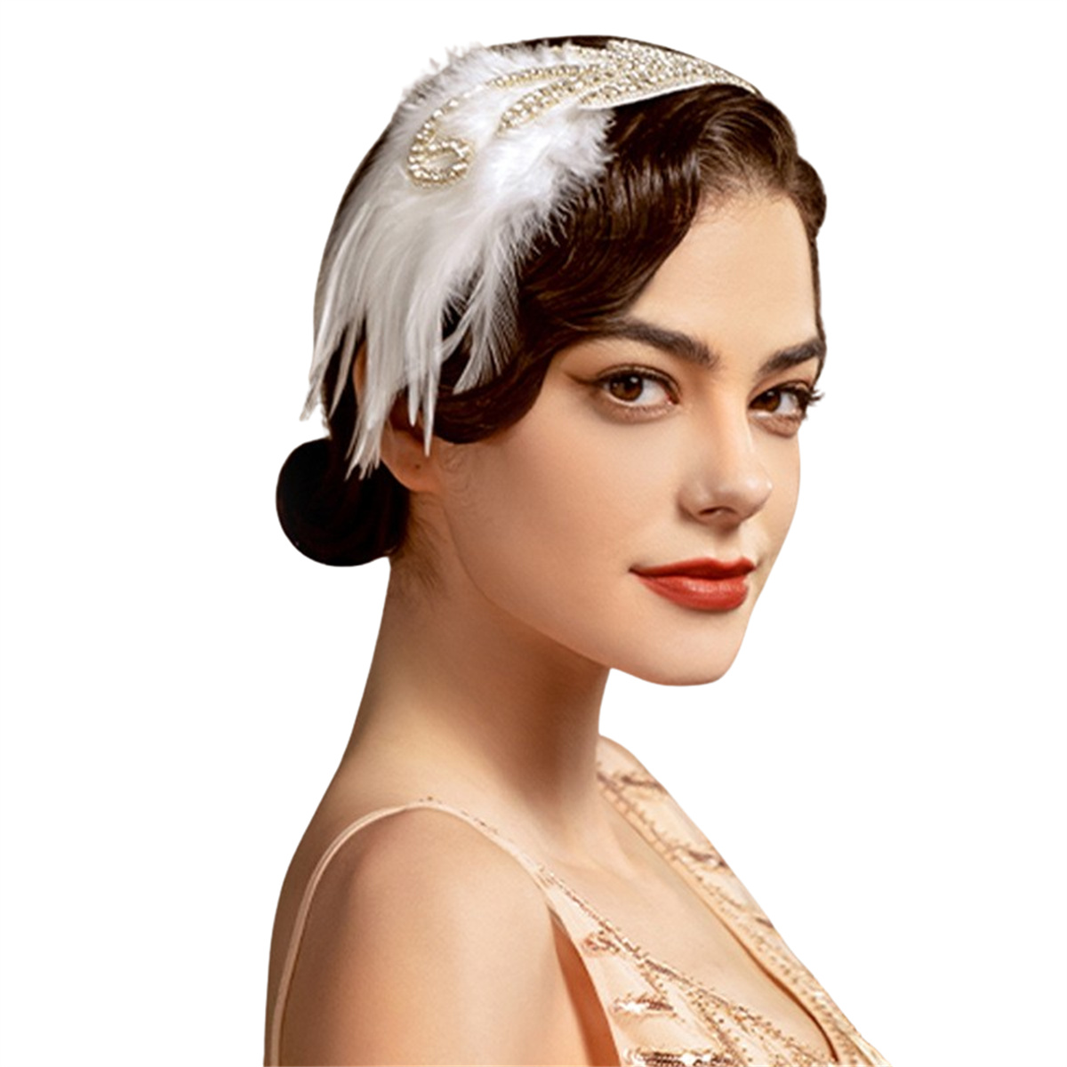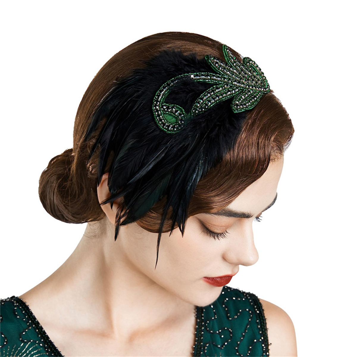 1920s Flapper Headband Accessories 20s Feather Hair Band Retro Gatsby Party