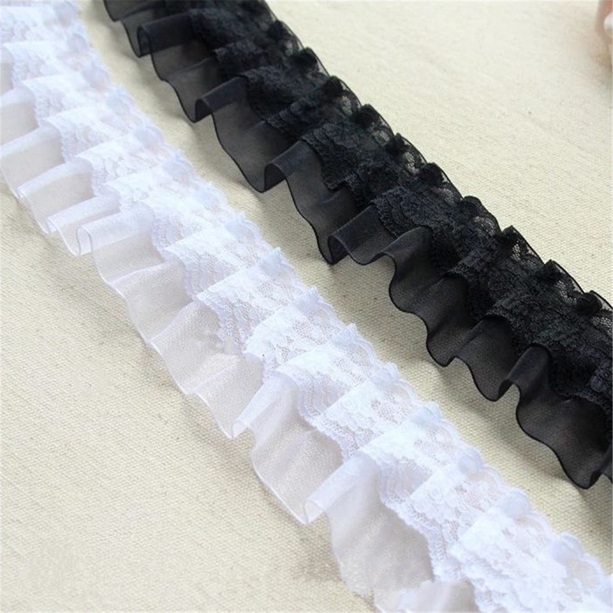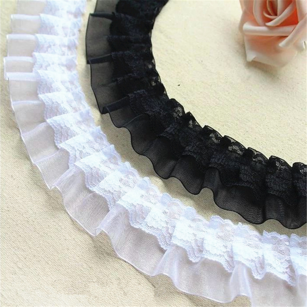 200cm Pleated Organza Lace Edge Trim Gathered Ribbon DIY Wedding Sewing Craft