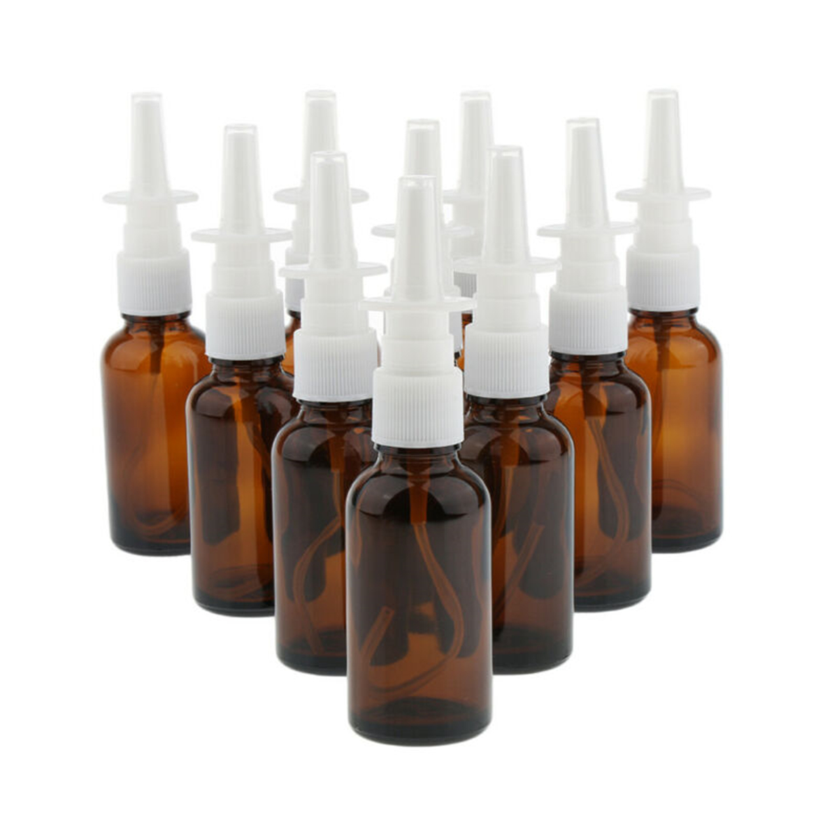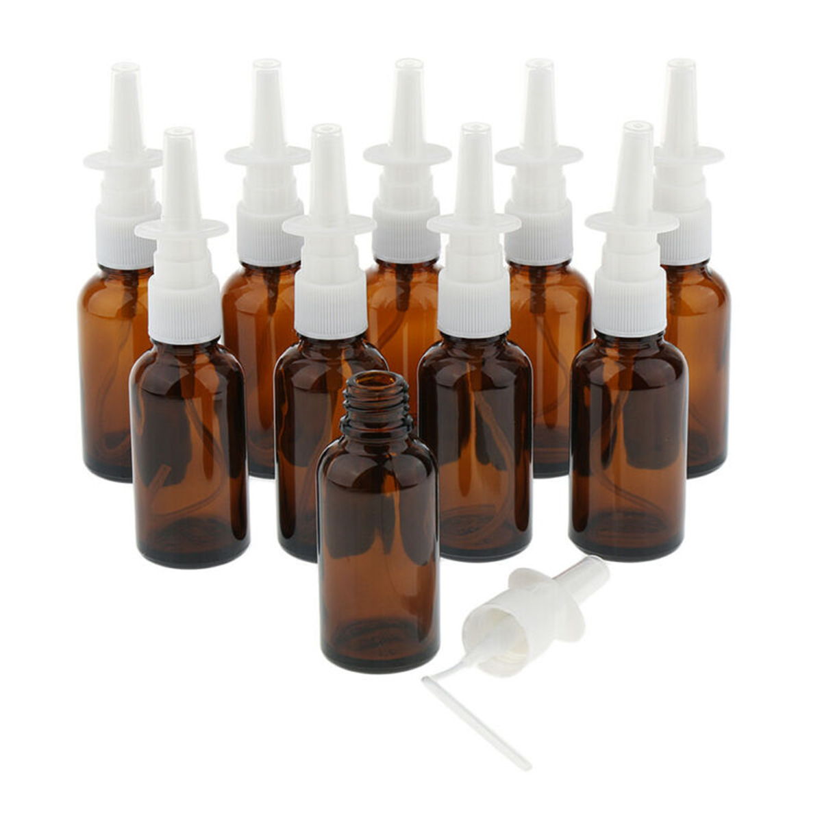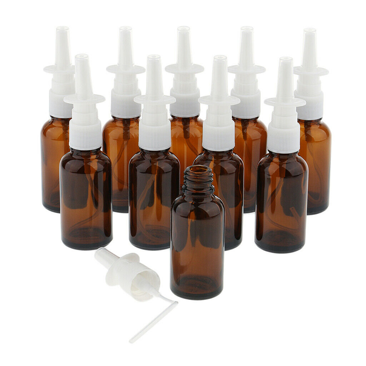 10/30/50ML Amber Glass Empty Nasal Pumps Spray Bottle Mist Nose Personal Care
