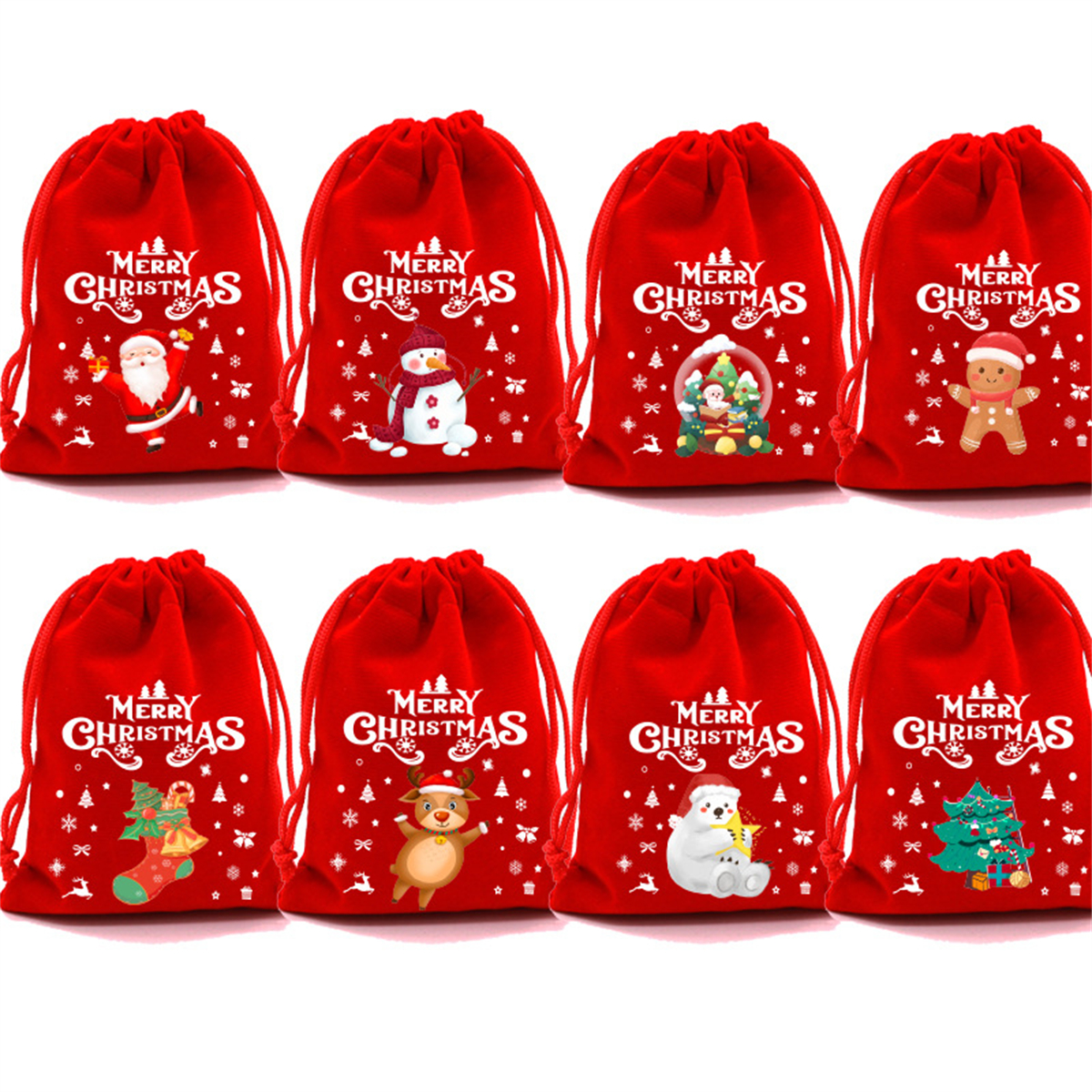 20pcs Christmas Bags with Drawing Small Candy Gift Bag Pouch Xmas Packaging Bag