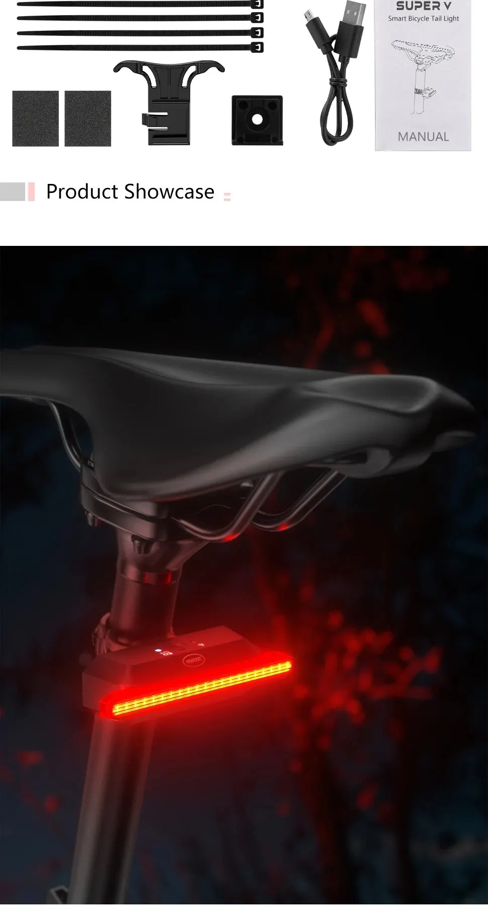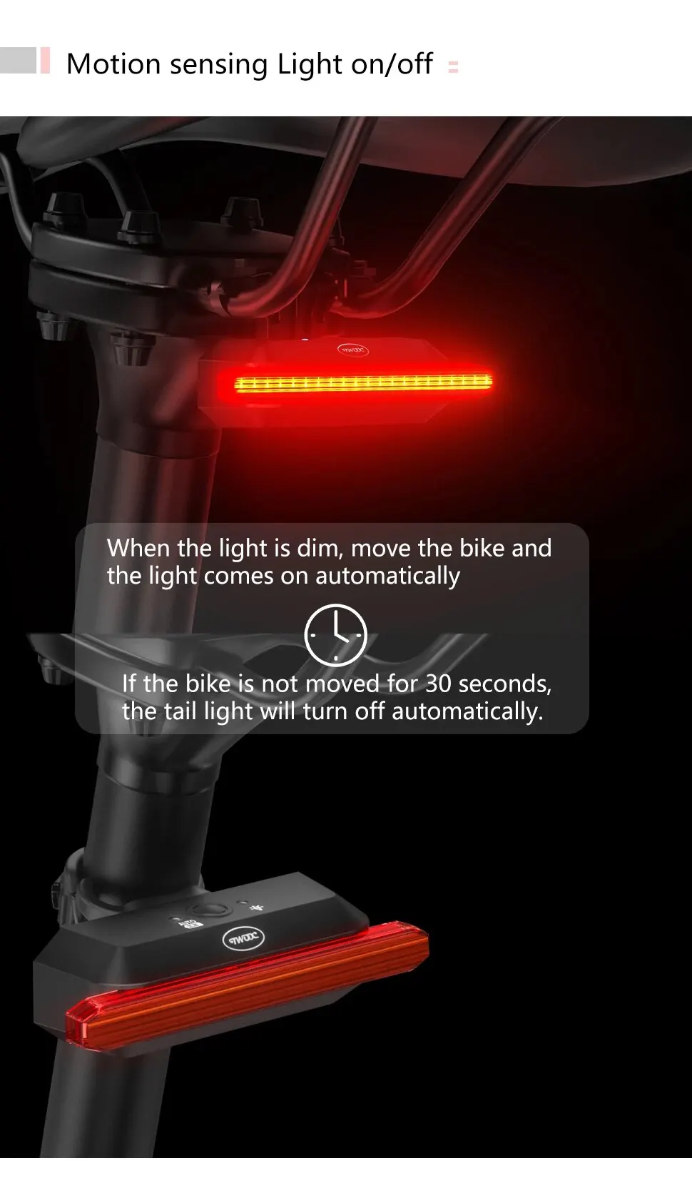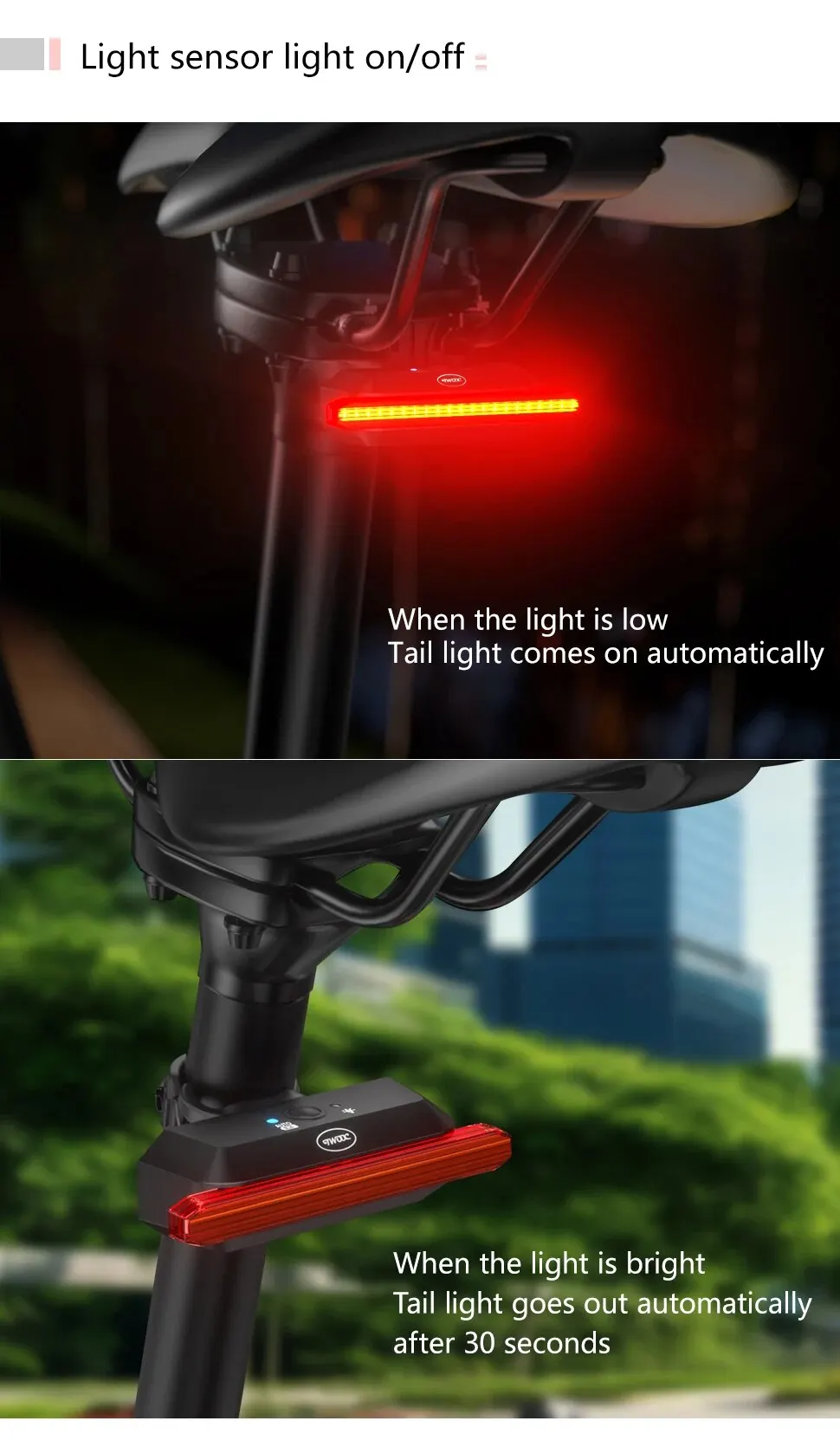 • Smart Brake Sensing :The light has a smart brake sensing feature that automatically turns on when you brake, making it safer to ride your bike at night.