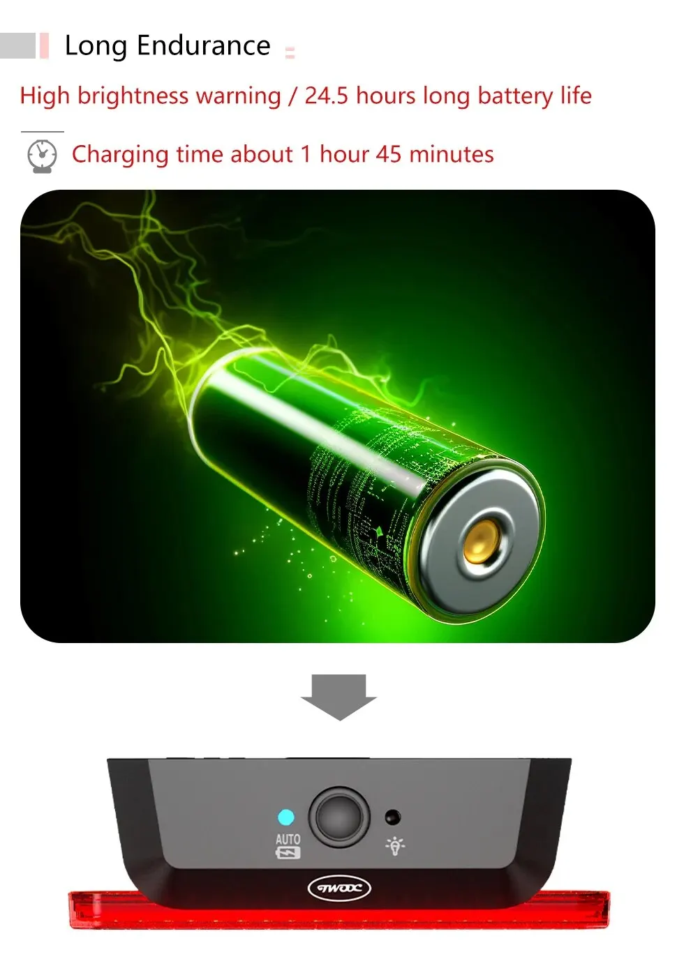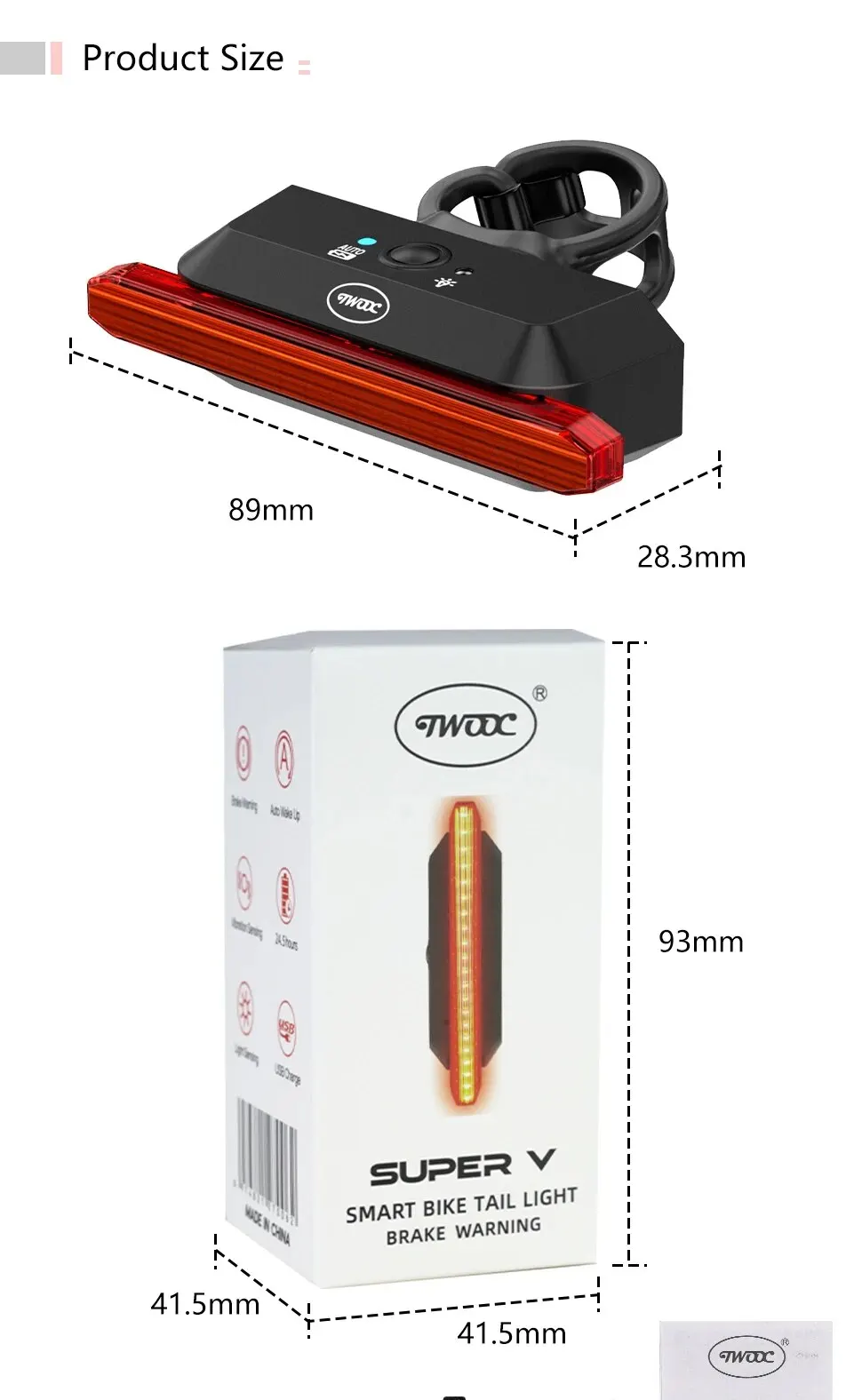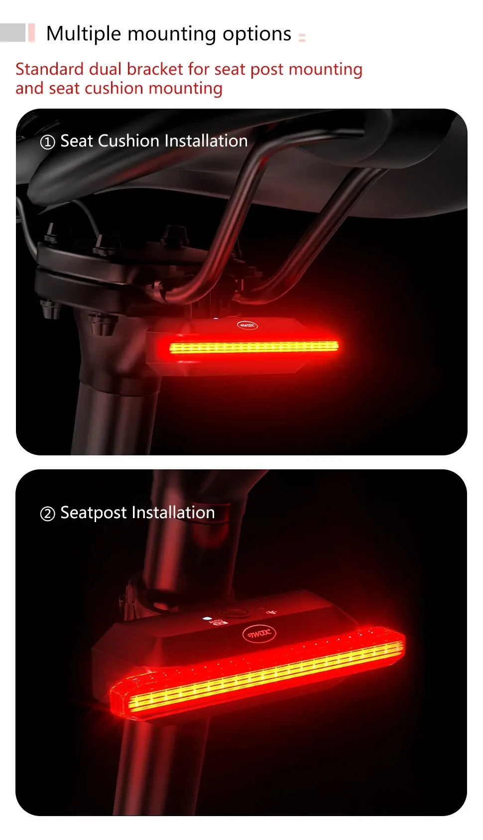 • Smart Brake Sensing :The light has a smart brake sensing feature that automatically turns on when you brake, making it safer to ride your bike at night.