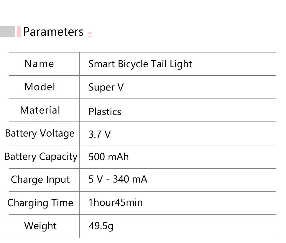 • Tail Light :This light is designed to be a tail light, providing maximum visibility to other road users and ensuring that you are visible from a distance.