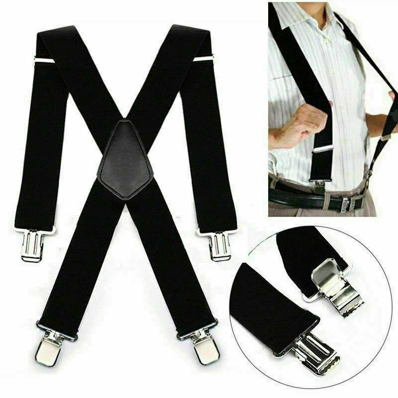Mens Braces Suspenders Black 50mm X Back Heavy Duty Biker Snowboard Trousers Clip On