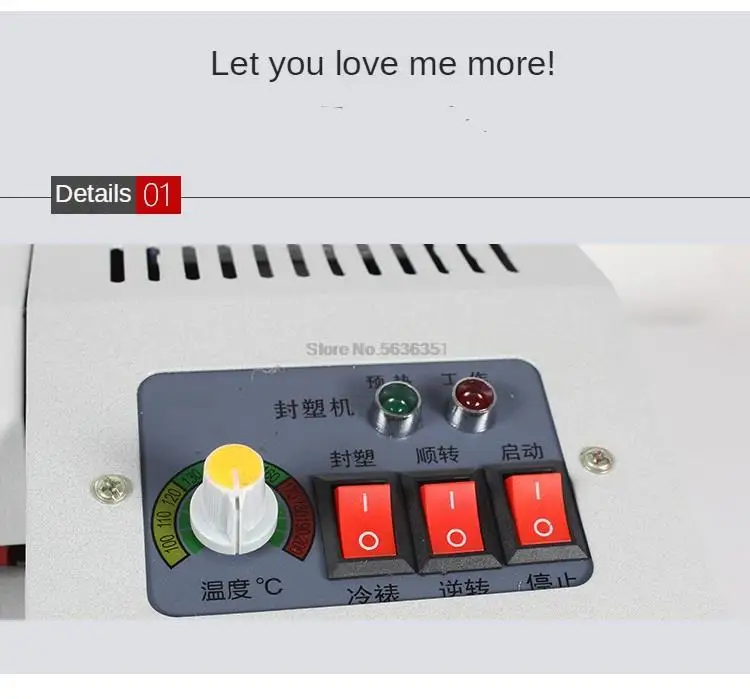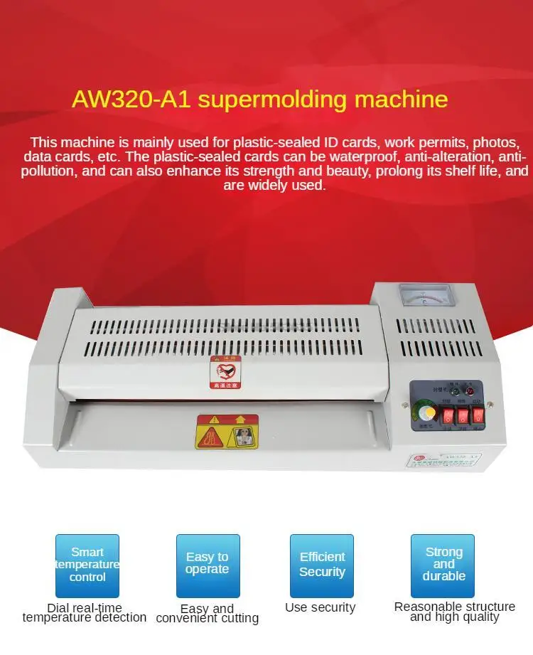 Name: 320A1 laminating machine Voltage: 220V Power: 600W Plastic Width: 320mm Plastic thickness: 1mm Warm up time: 3-5 minutes Package Size: 45 * 33 * 18cm Weight: 8.5kg