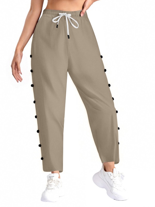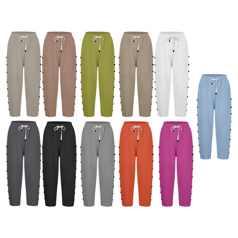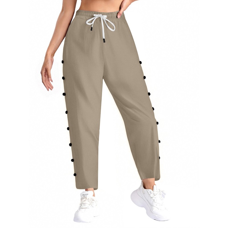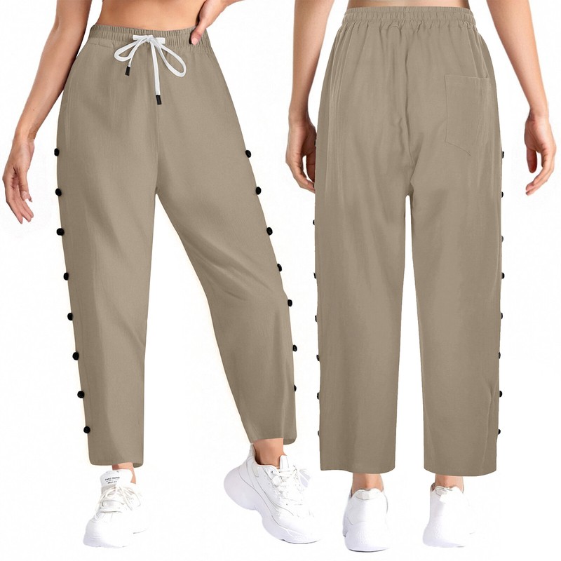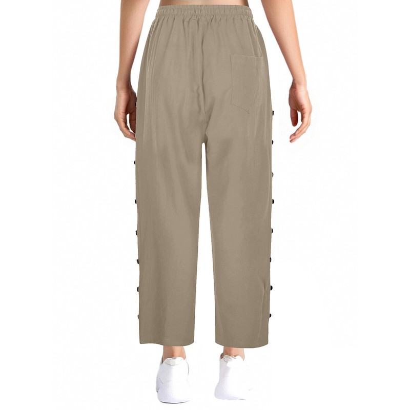 Side button details add a stylish and trendy element, elevating the simple design of these capri pants and making them stand out from ordinary wear.