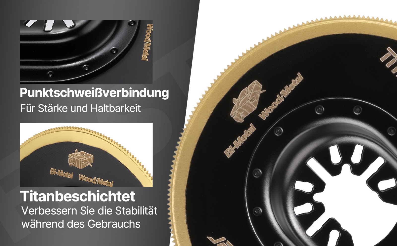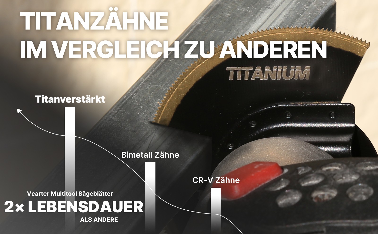 Titanverstärkt – Die titanbeschichteten Sägeblätter für oszillierende Werkzeuge bieten eine doppelt so lange Lebensdauer wie herkömmliche Bimetall-Sägeblätter.