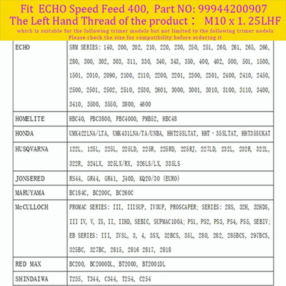 The shell is made of high quality nylon, solid and durable. Convenient to change, easy to install. Vibration is small, wear well and good abrasion performance. It fits for Echo Speed-Feed 400, SRM-225, SRM-230, SRM-210. Practical and compact, a great accessory for brush cutter.