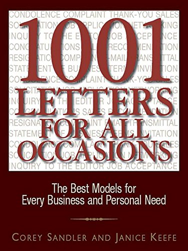 Dear Reader, Welcome to fictional Smalltown, Ohio--where every resident knows how to write clear, concise, attention-grabbing letters. With more samples than any other book, 1001 Letters for All Occasions is the resource any time written communication is in order. Letters are still the best way to communicate, and the residents of Smalltown are happy to share their best examples with you. We provide letters for every personal and business need, including apologies, business proposals, complaints, congratulations, cover letters, invitations, condolences, thanks, and travel letters in three languages. Whether you are writing to your bank, your child's school, or a large government agency, our picture-perfect sample letters will get you the response you want! Sincerely, Corey Sandler and Janice Keefe