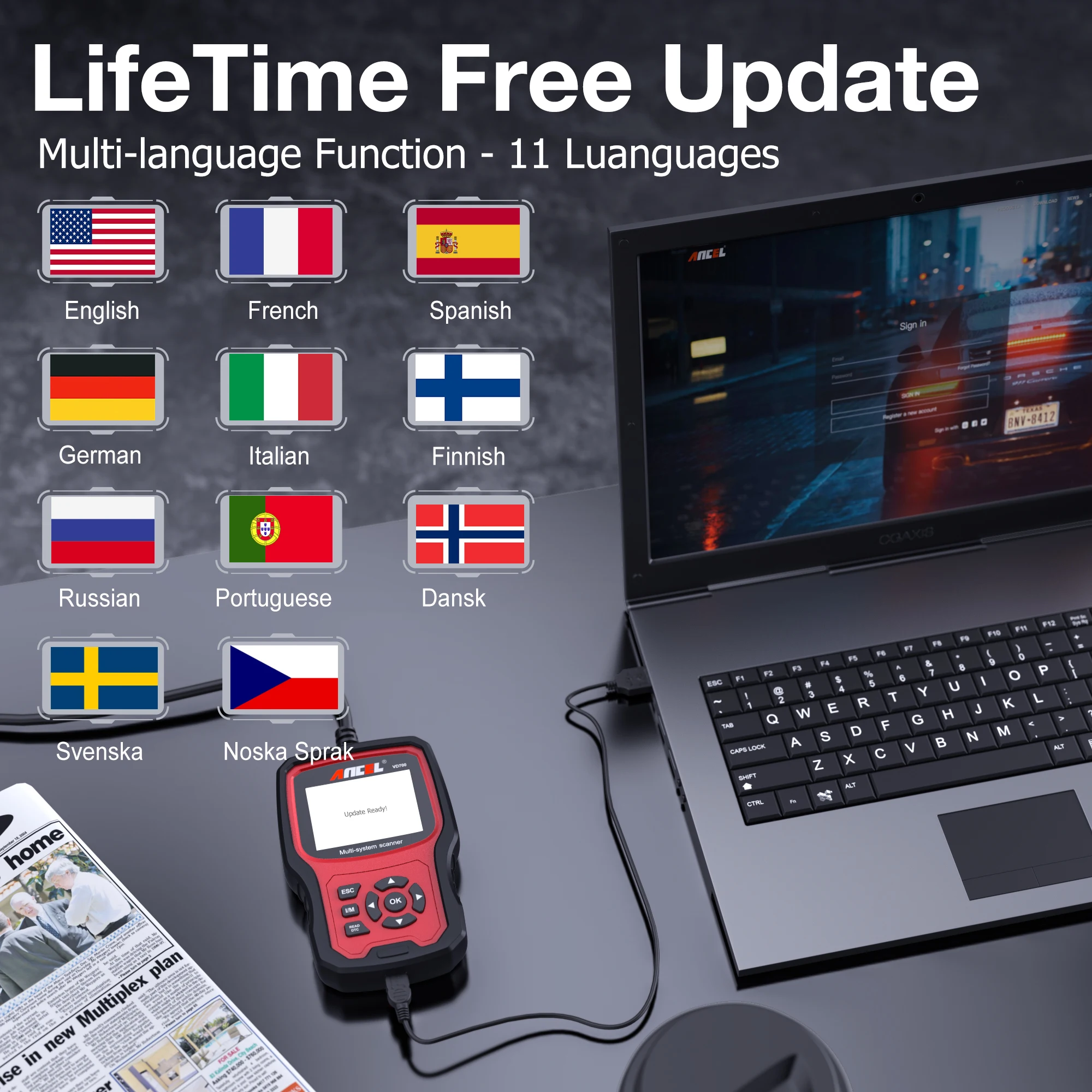 ANCEL VD700 Supported 11 Kinds of Language & Lifetime Free Update