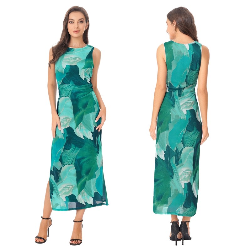 Side ruching and a slit detail enhance the body-con silhouette, adding a touch of elegance and allure, making you stand out from the crowd.