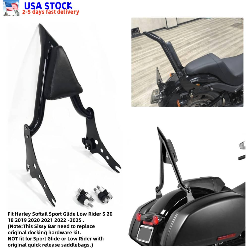 Grab this set to fit Harley Softail Sport Glide Low Rider S 2018 2019 2020 2021 2022 -2025 .(Note:This Sissy Bar need to replace original docking hardware kit. NOT fit for Sport Glide or Low Rider with original quick release saddlebags.)
