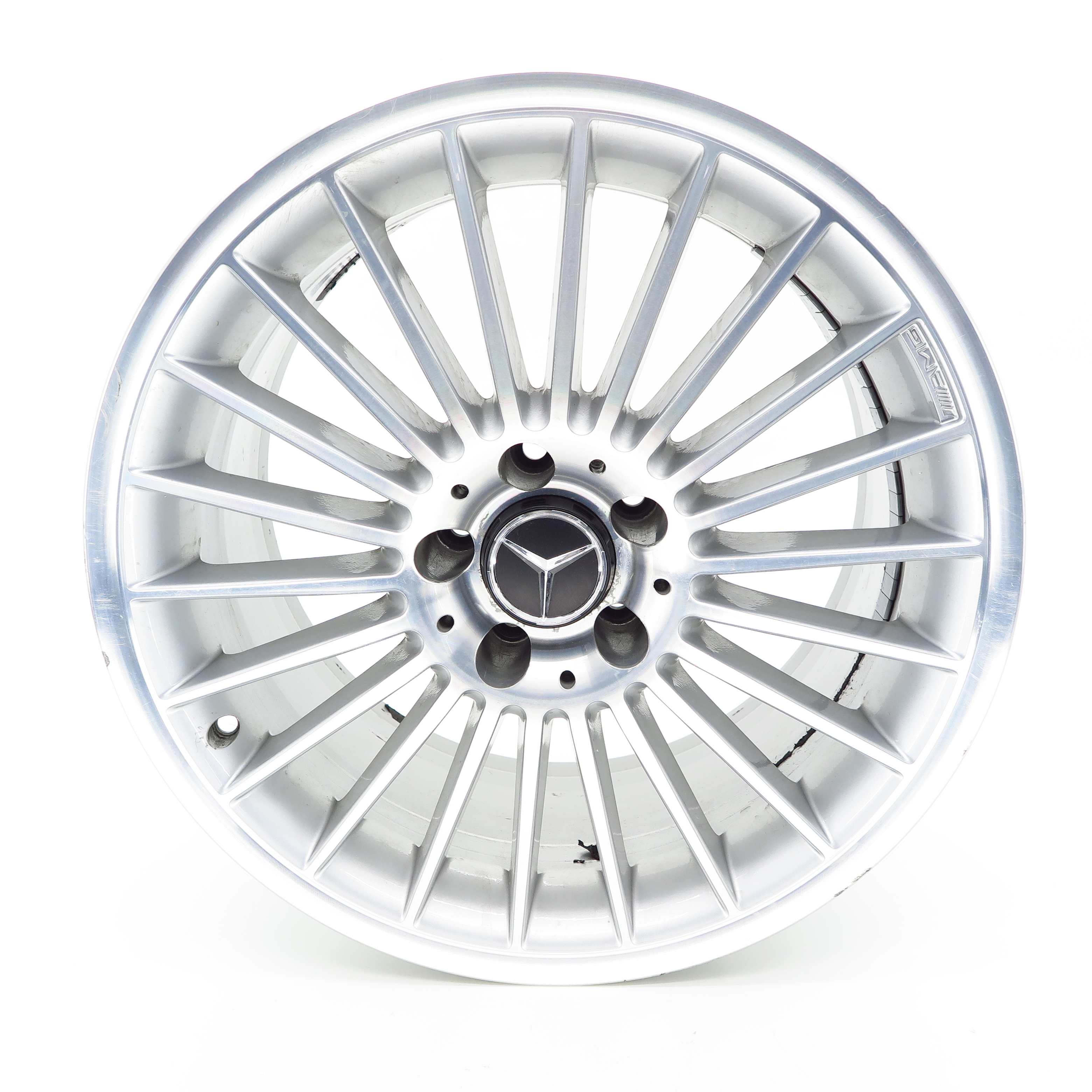 Die Alufelge weist Kratzer auf.