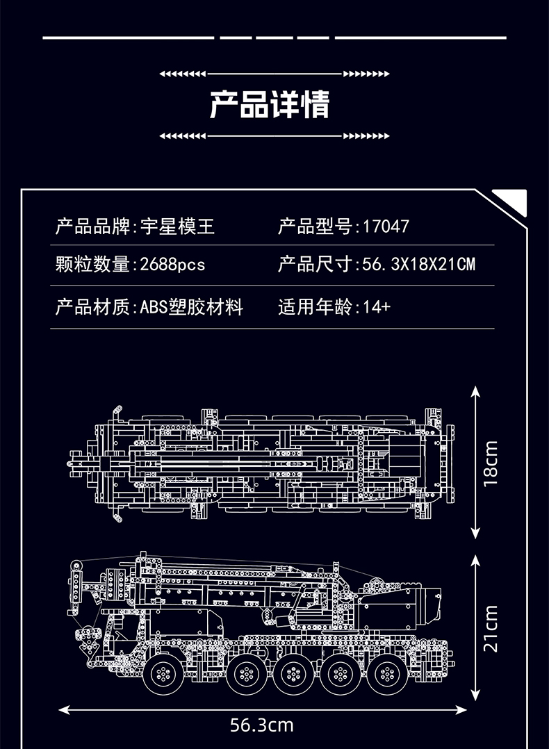 MOULD KING 17047 Mobilkran Kran Auto Crane LKW Klemmbausteine Fernbedienung MOC