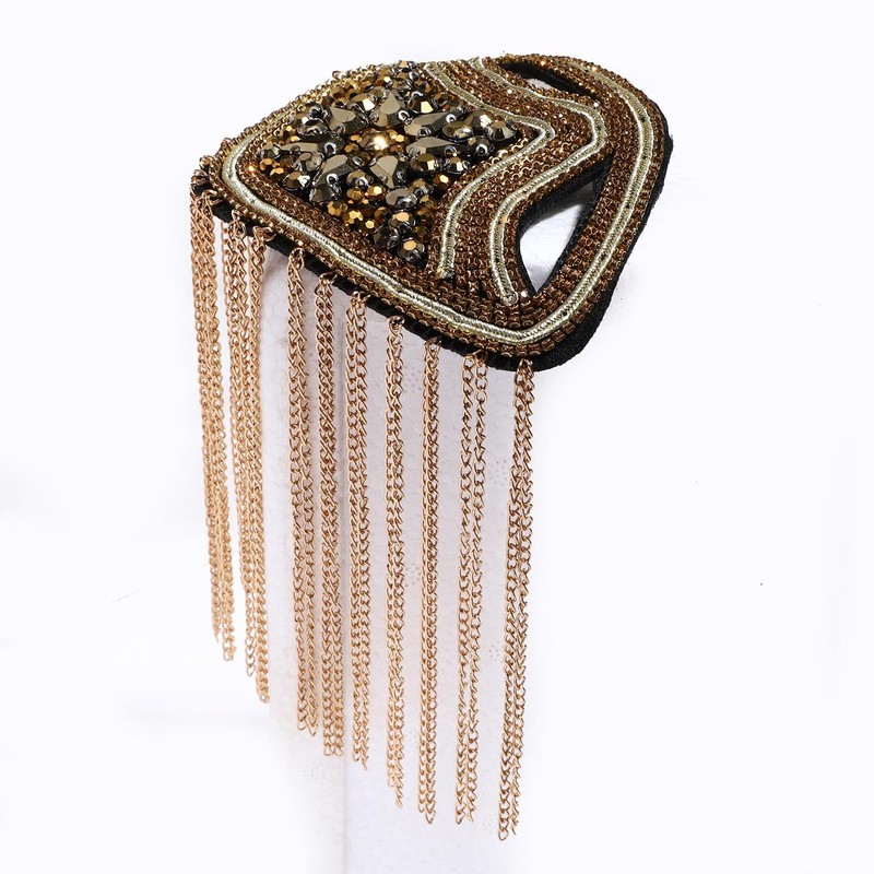 Crafted from a blend of polyester, metal, and rhinestones, these epaulets are both durable and eye-catching, offering long-lasting wear.