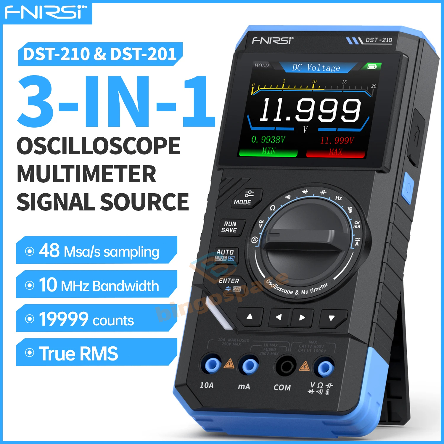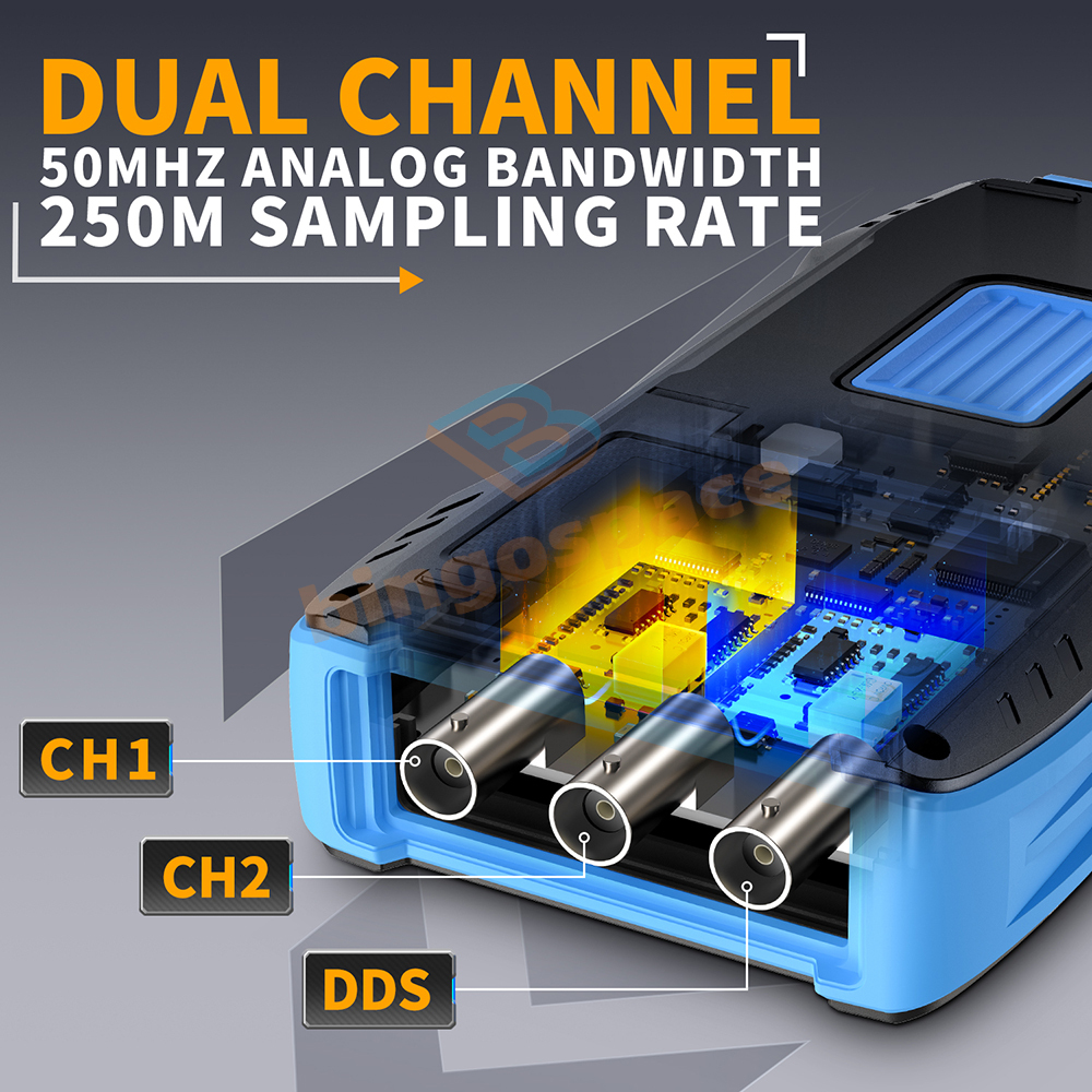 FNIRSI DST-201 provides a sampling rate of 5MSa/s and an analog bandwidth of 1MHz, DST-210 provides a sampling rate of 48MSa/s and an analog bandwidth of 10MHz, ensuring waveform analysis. It is equipped with voltage protection up to ±400V, suitable for a wide range of applications.