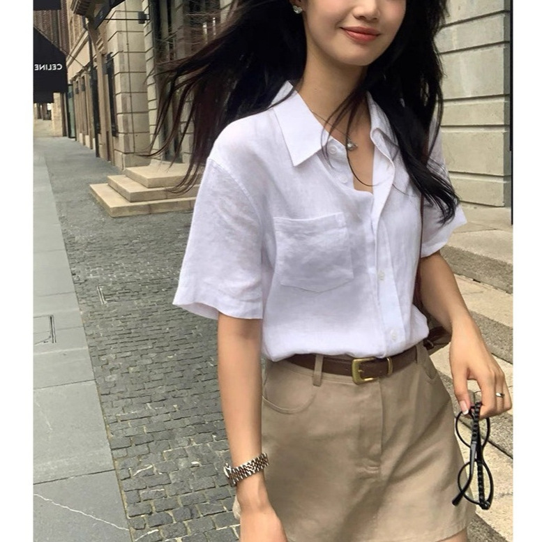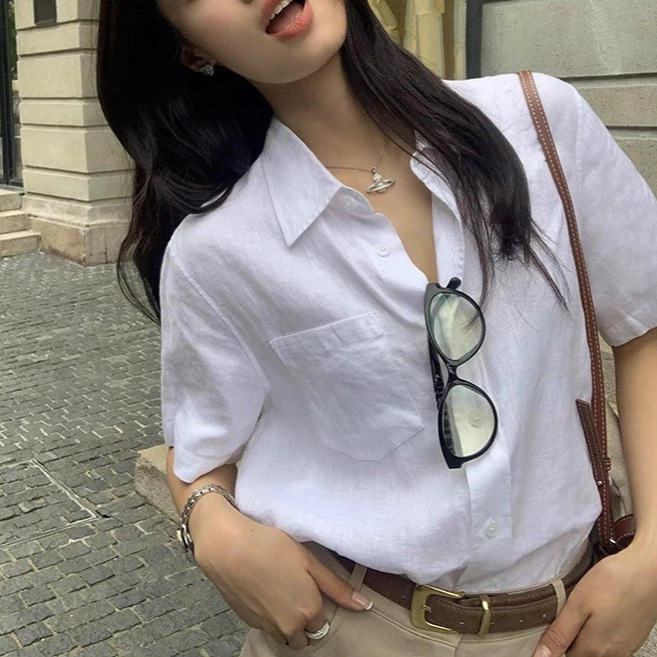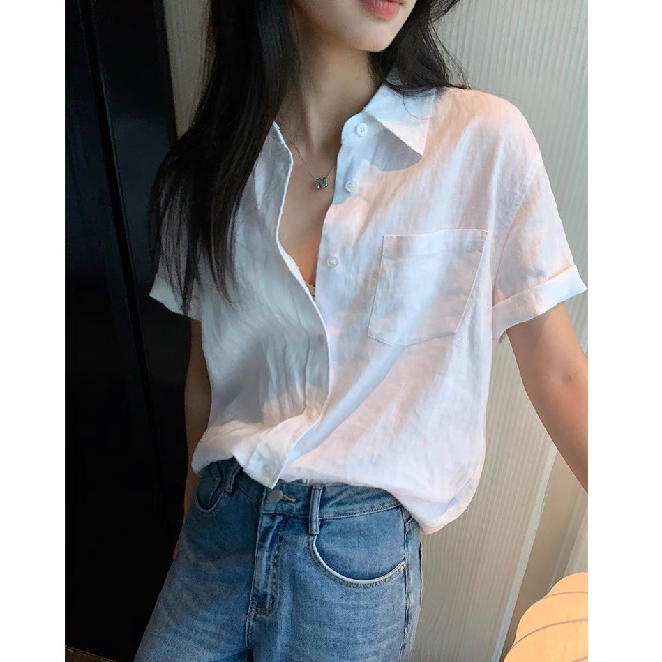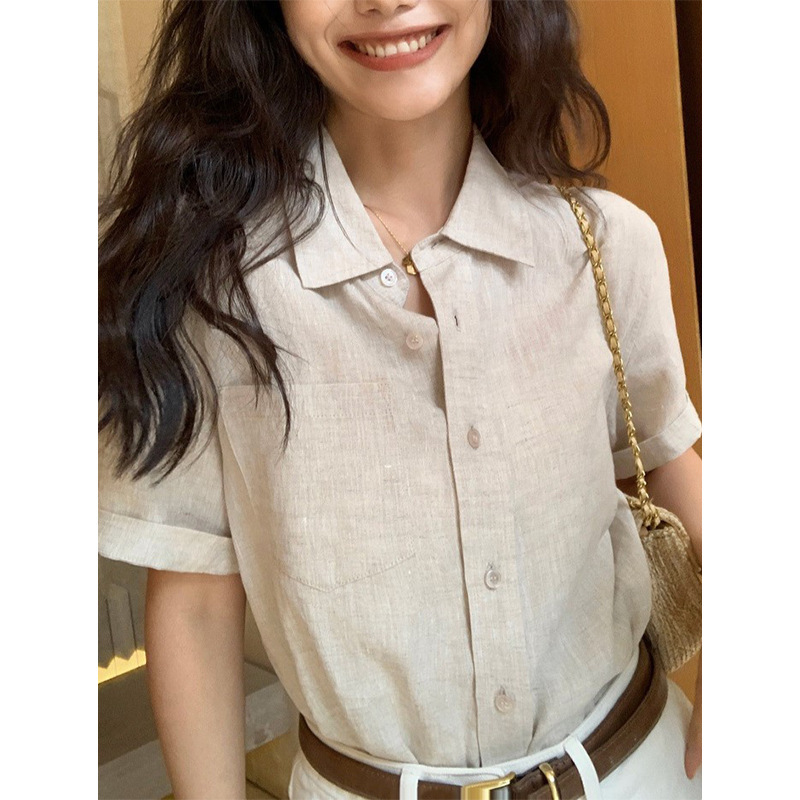 Linen Short Sleeve Shirt Women New, Commuter Loose Casual Shirt Temperament Top