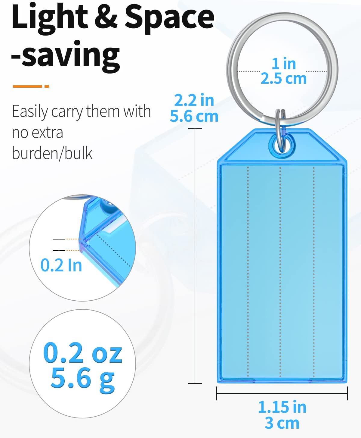 - Portable to Carry: Size: 2.2" L x 1.15" W; Light weight 0.08 oz. Easily attach them to items with the split rings. Perfect to be carried around with no extra burden or bulk.