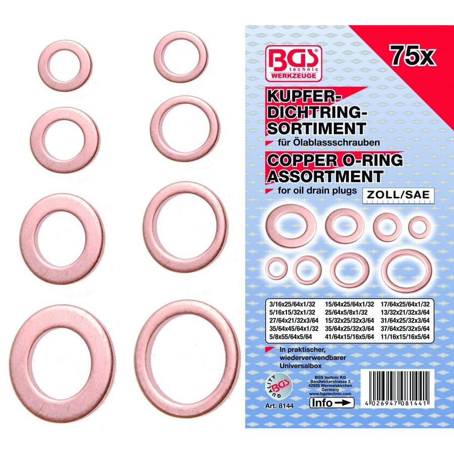 ASENTAMIENTO DE ANILLO DE COBRE DE 75 piezas, en tamaños de pulgadas, para tapones de drenaje de aceite