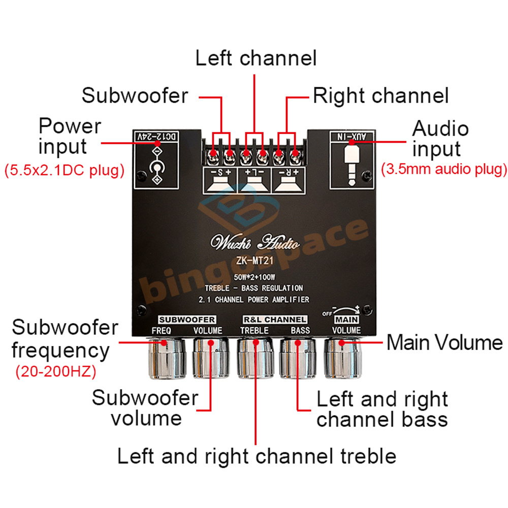 1: Subwoofer + left channel + right channel, with subwoofer output with high and low bass adjustment, the sound quality is cool and shocking!
