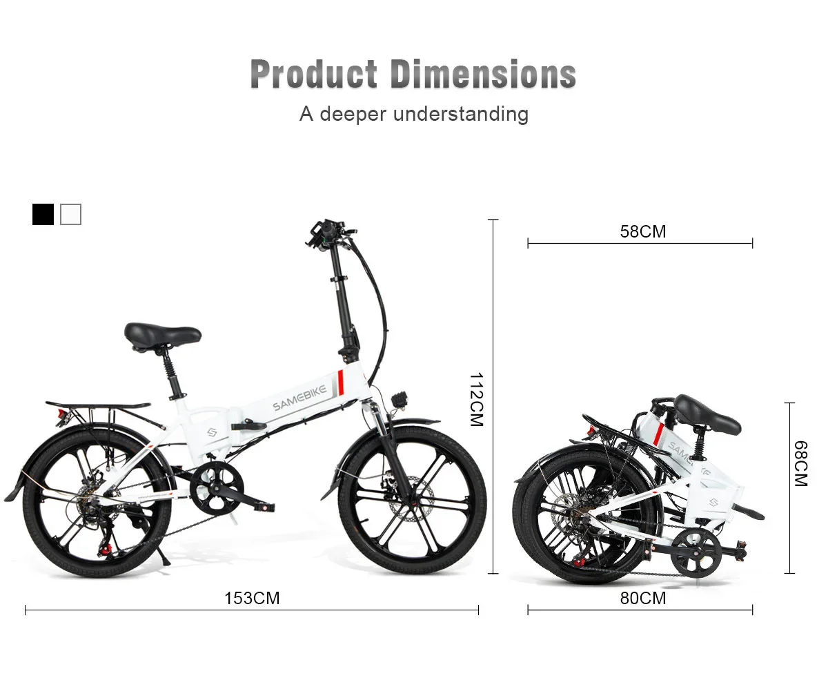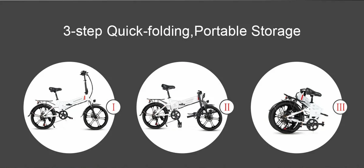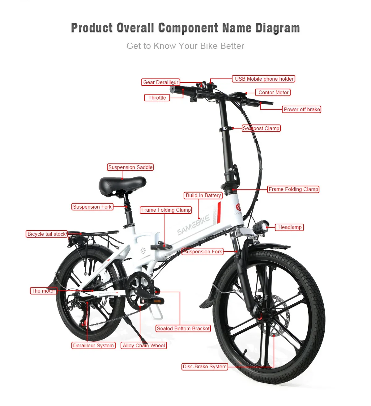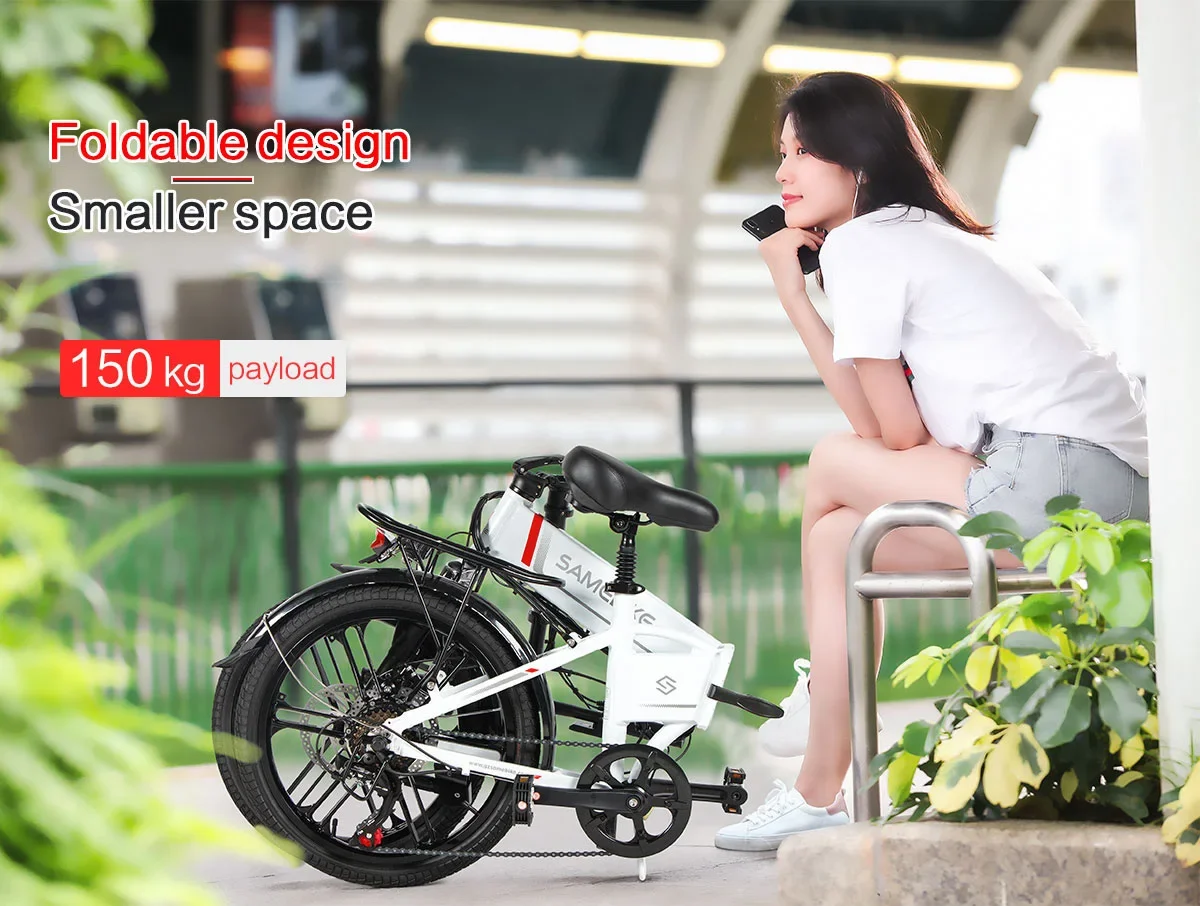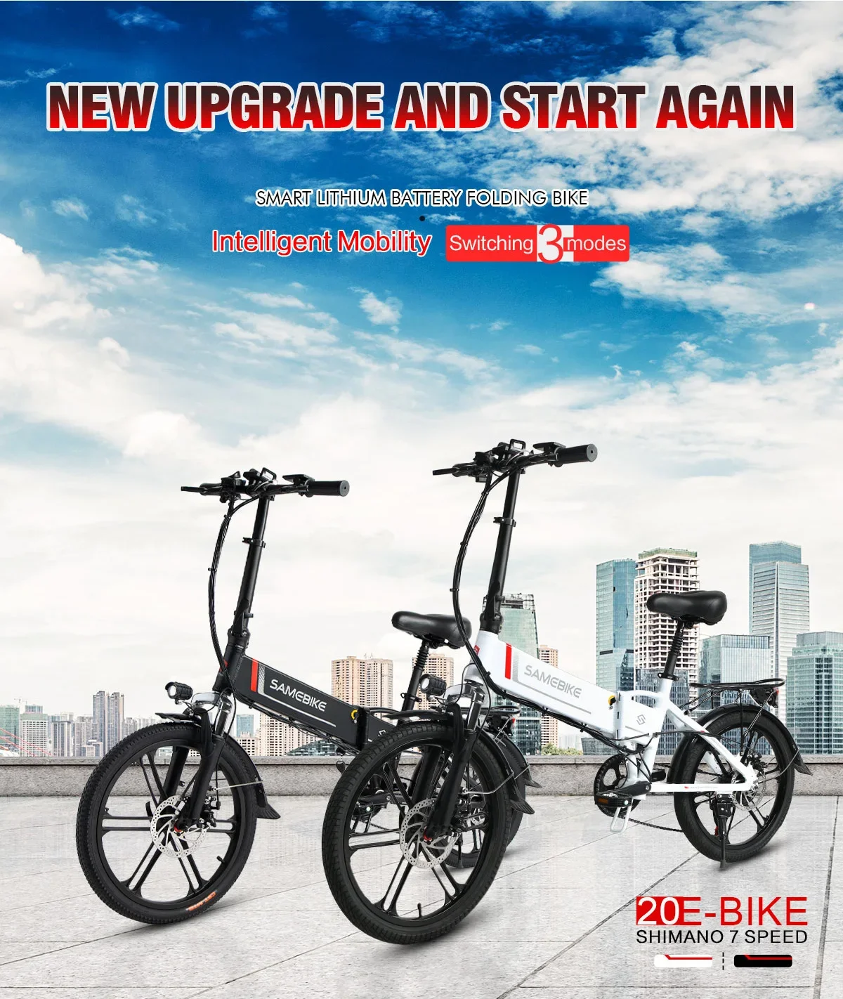 SAMEBIKE 20 Inch Electric Bike City EBike Folding Bike with 48 V 10.4 Ah Removable Battery Shimano 7 Gears Off-Road Mountain Bike E-Bike Max. Range up to 40-80 km