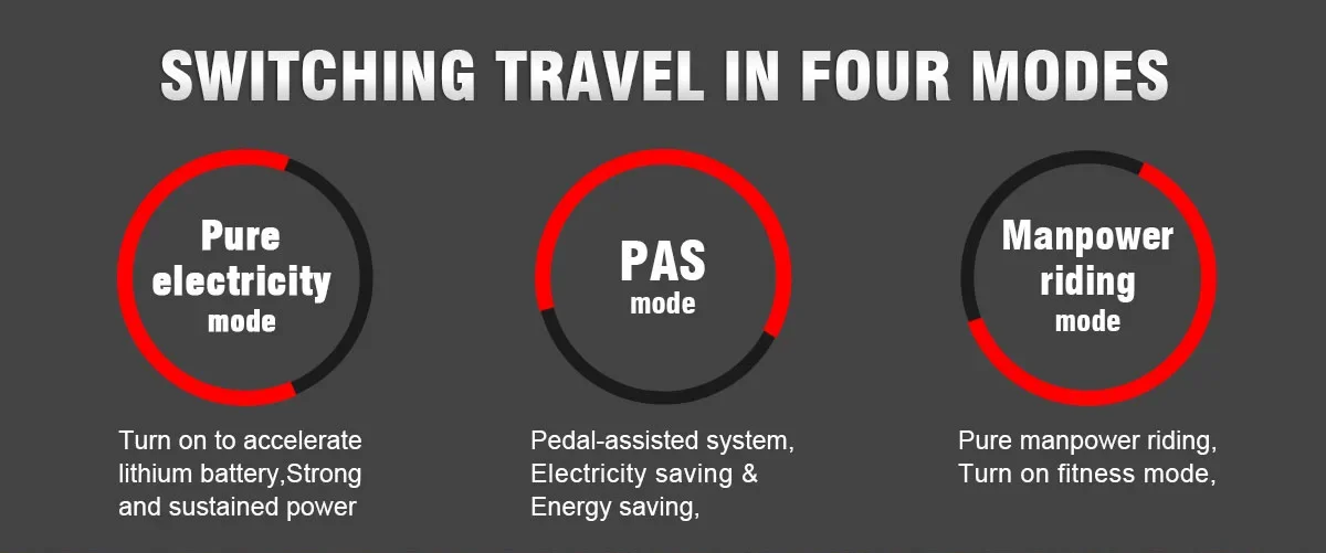 3 Schaltmodi für Ihre unterschiedlichen Anforderungen: Pure Electricity / Pedal Assisted System (PAS) / Man Power Riding Mode.