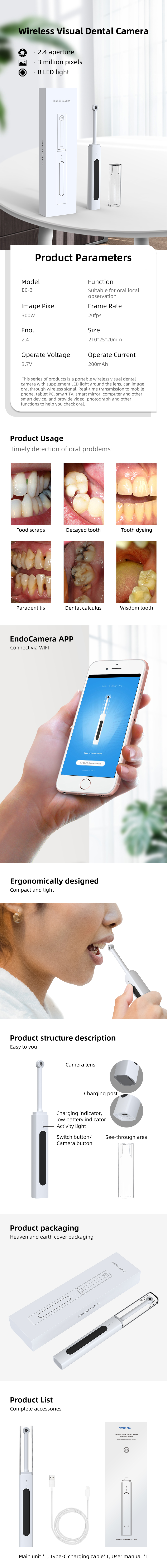 Dental Oral Camera Wireless WiFi Oral HD Oral Intraoral Endoscope Camera EC-3