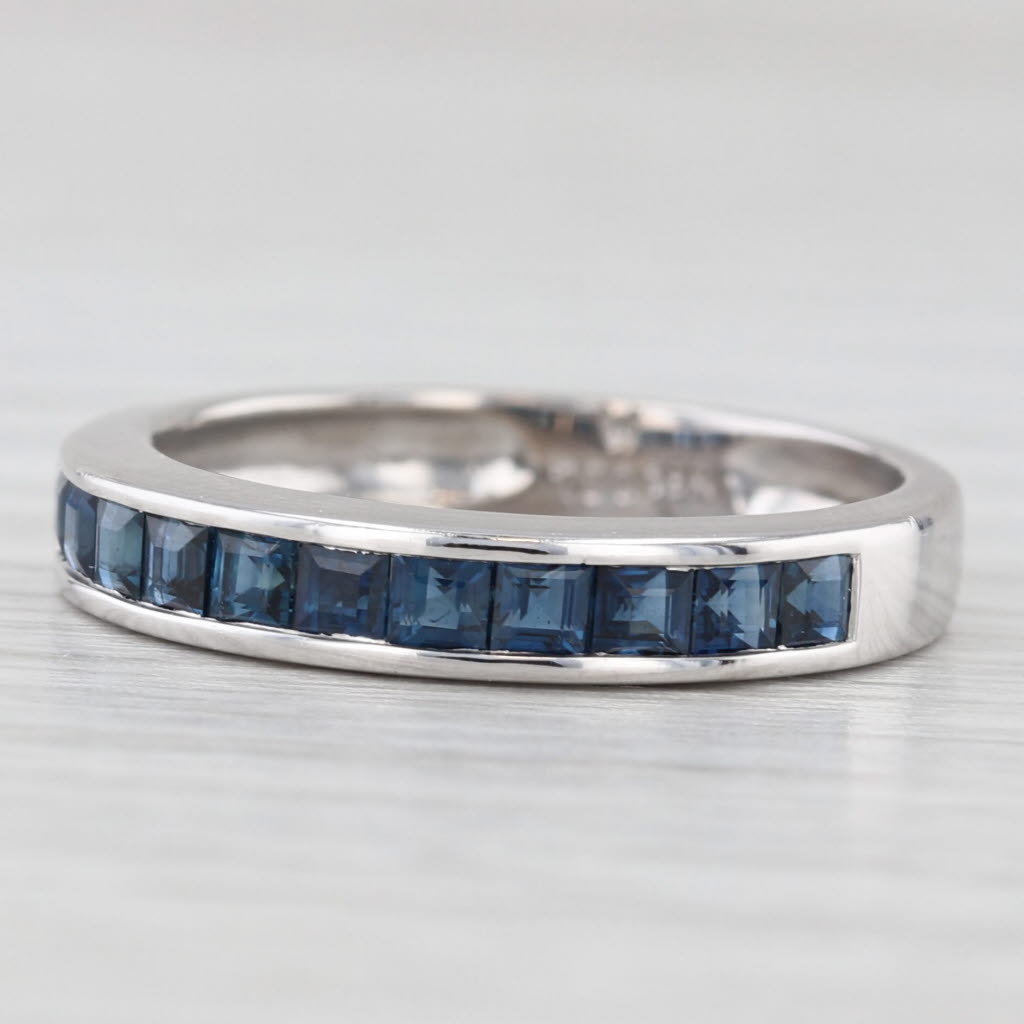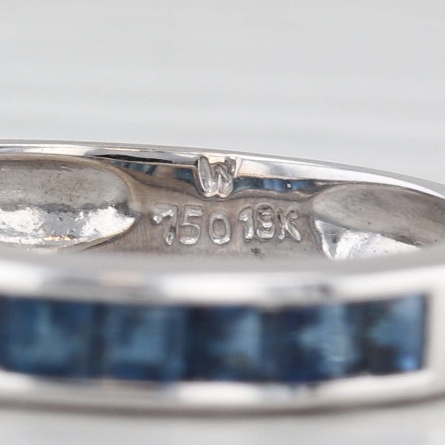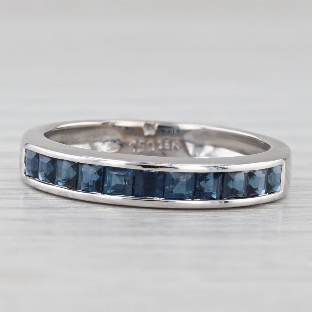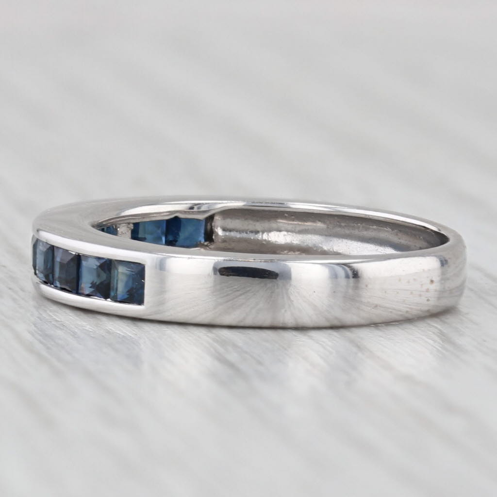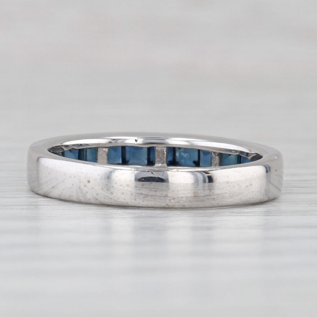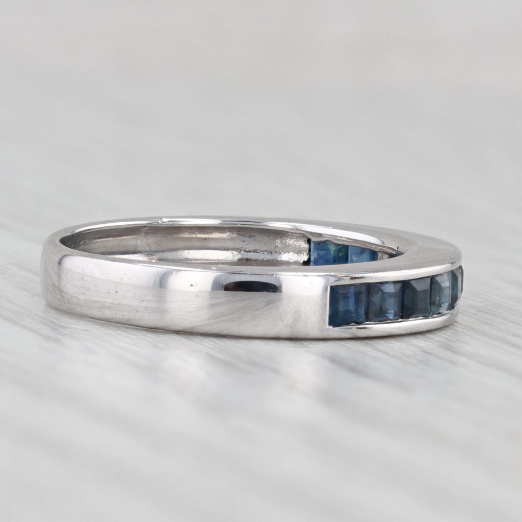 0.60ctw Blue Sapphire Wedding Ring 18k White Gold Stackable Band Size 6.25