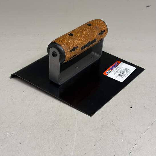 The 6" long blue steel blade moves smoothly along edges of concrete sidewalks and slabs. This edger creates a 1/2" radius, with a lip, on the edge of concrete slabs to prevents the edges from chipping with wear. The 6" square tool provides the perfect amount of coverage on sidewalks and small projects. The tempered crucible spring steel provides the proper amount of "give" for the perfect feel when working on slabs. Three rivets secure the steel mounting to the blade. The rivets are ground for a smooth perfect finish. A comfortable wood handle completes the tool. Proudly made in the USA.